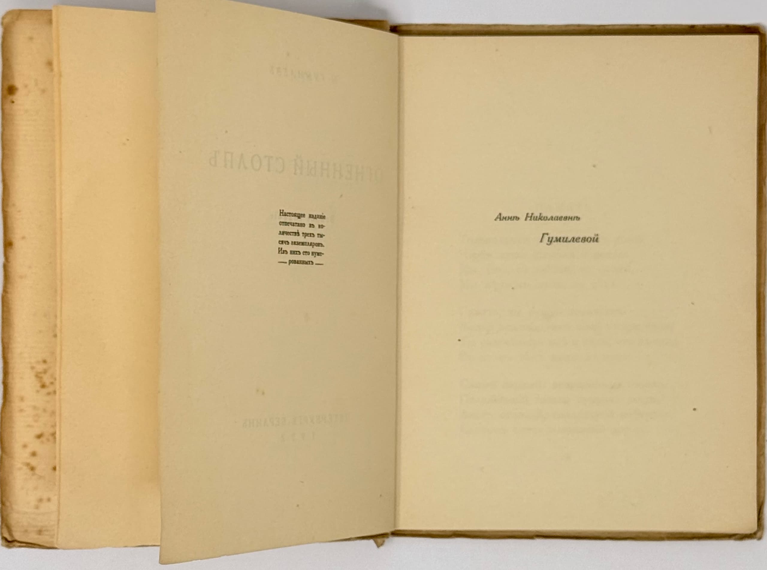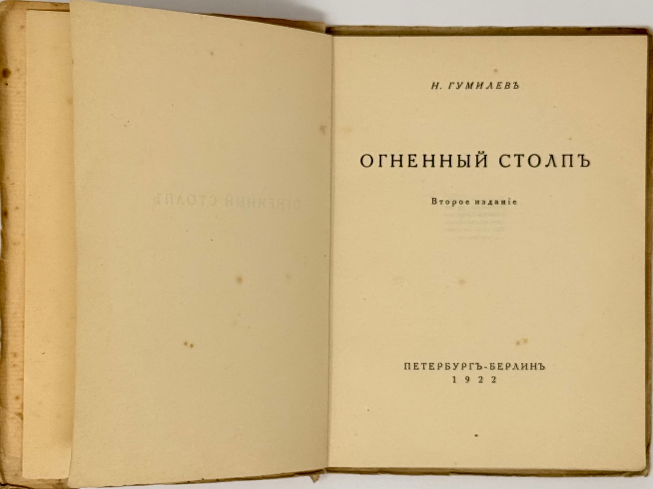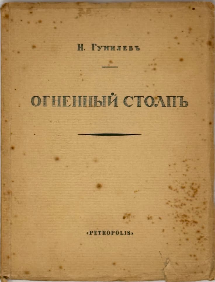GUMILEV NIKOLAI (1886-1921) Ognennyi stolp. [The Pillar of Fire.] – 2nd ed. Pb.; Berlin: [Petropolis], 1922.
