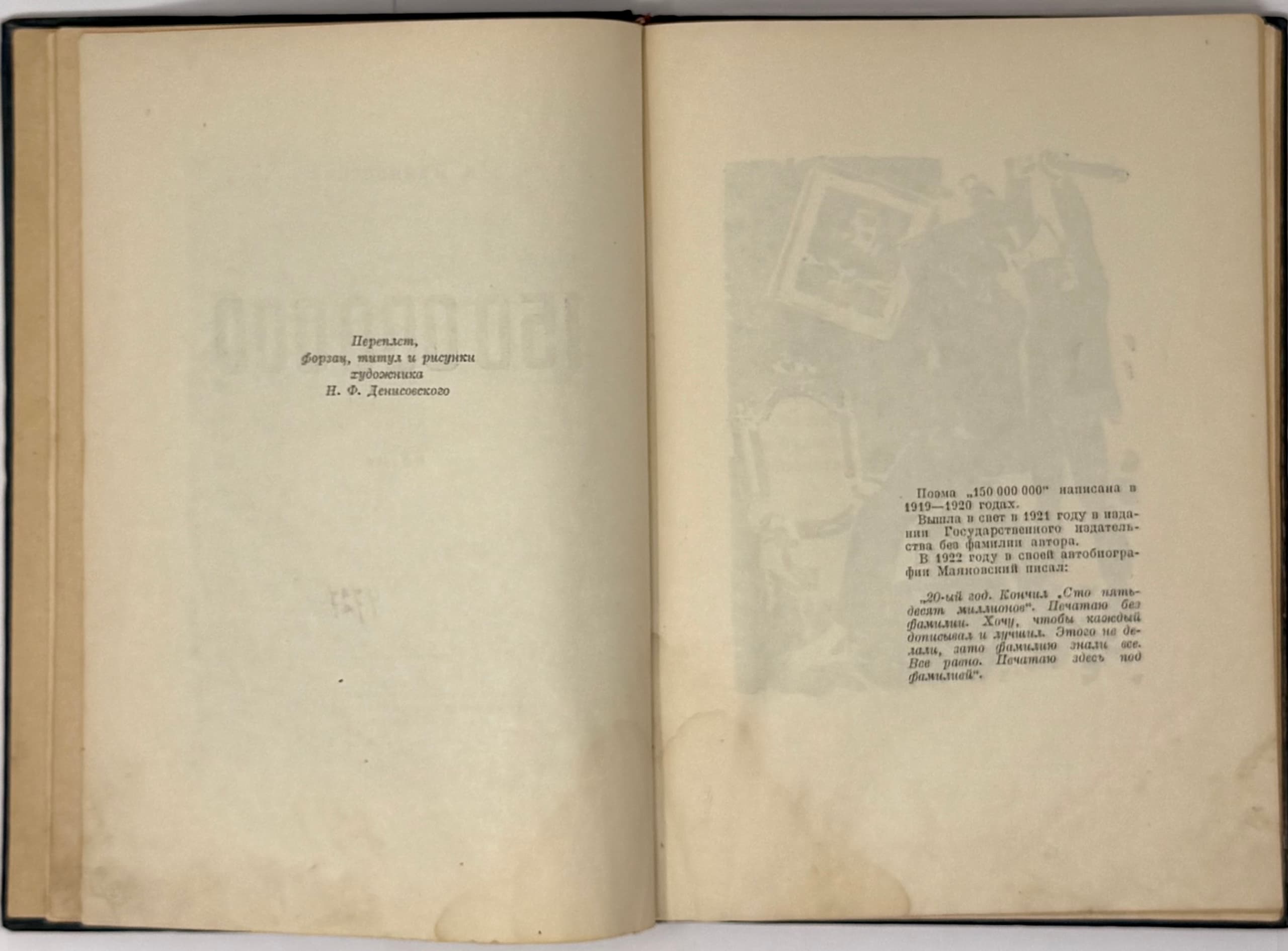 MAYAKOVSKY VLADIMIR (1893-1930) 150,000,000: Poem. Moscow: GIKHL, 1937.