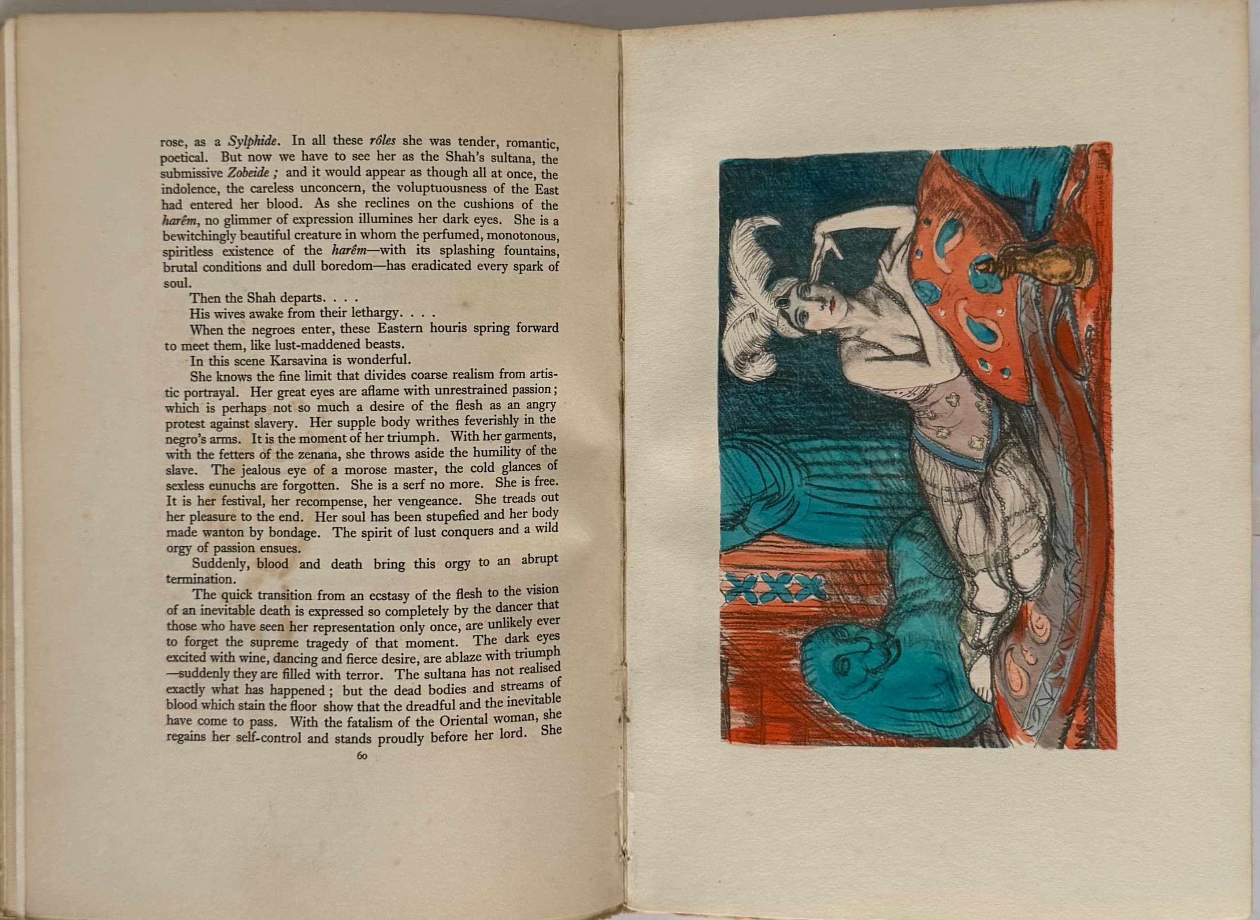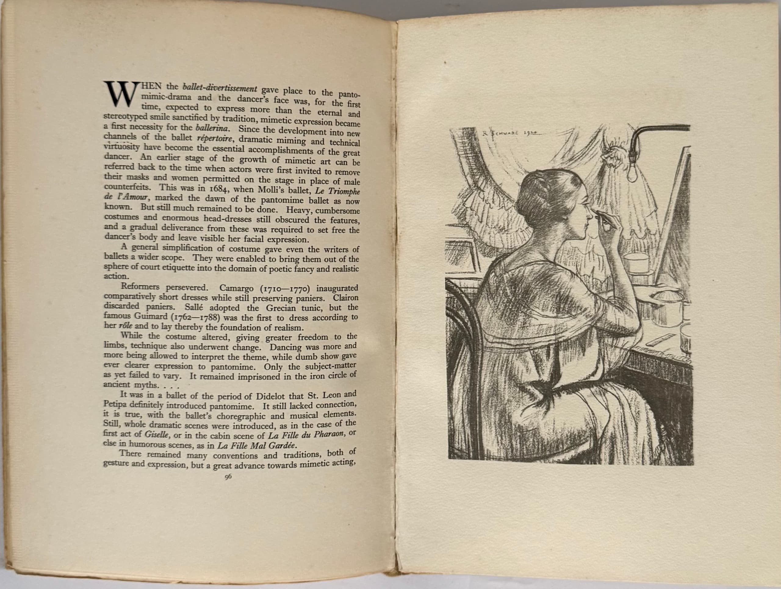 Numerous illustrations – photographs and drawn portraits of the ballerina. In a publisher’s illustrated cardboard binding by artist Ad. Lavaux.