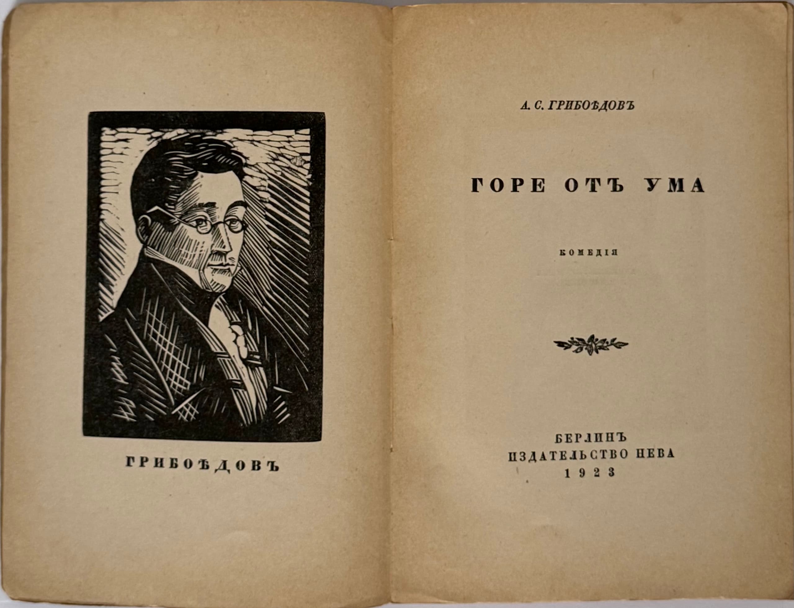 GRIBOEDOV, A.S. (1795-1829) Gore ot uma: Komediya. [Woe from Wit: A Comedy.] Berlin: Neva Publishing House, 1923.