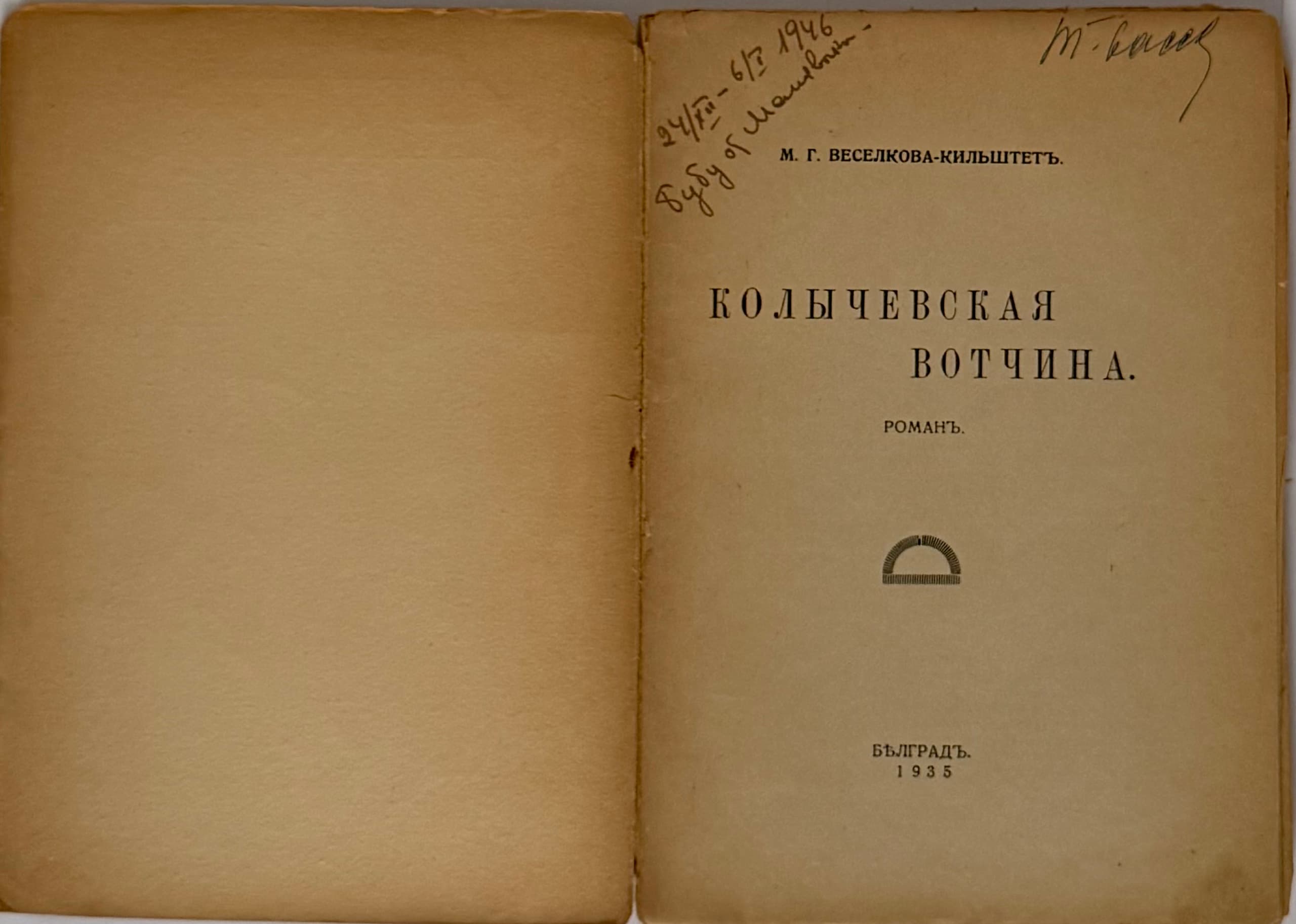 VESELKOVA-KILSHTET MARIA (1861-1931) Kolychevskaya Votchina: Novel. Belgrade: Kniga, 1935.