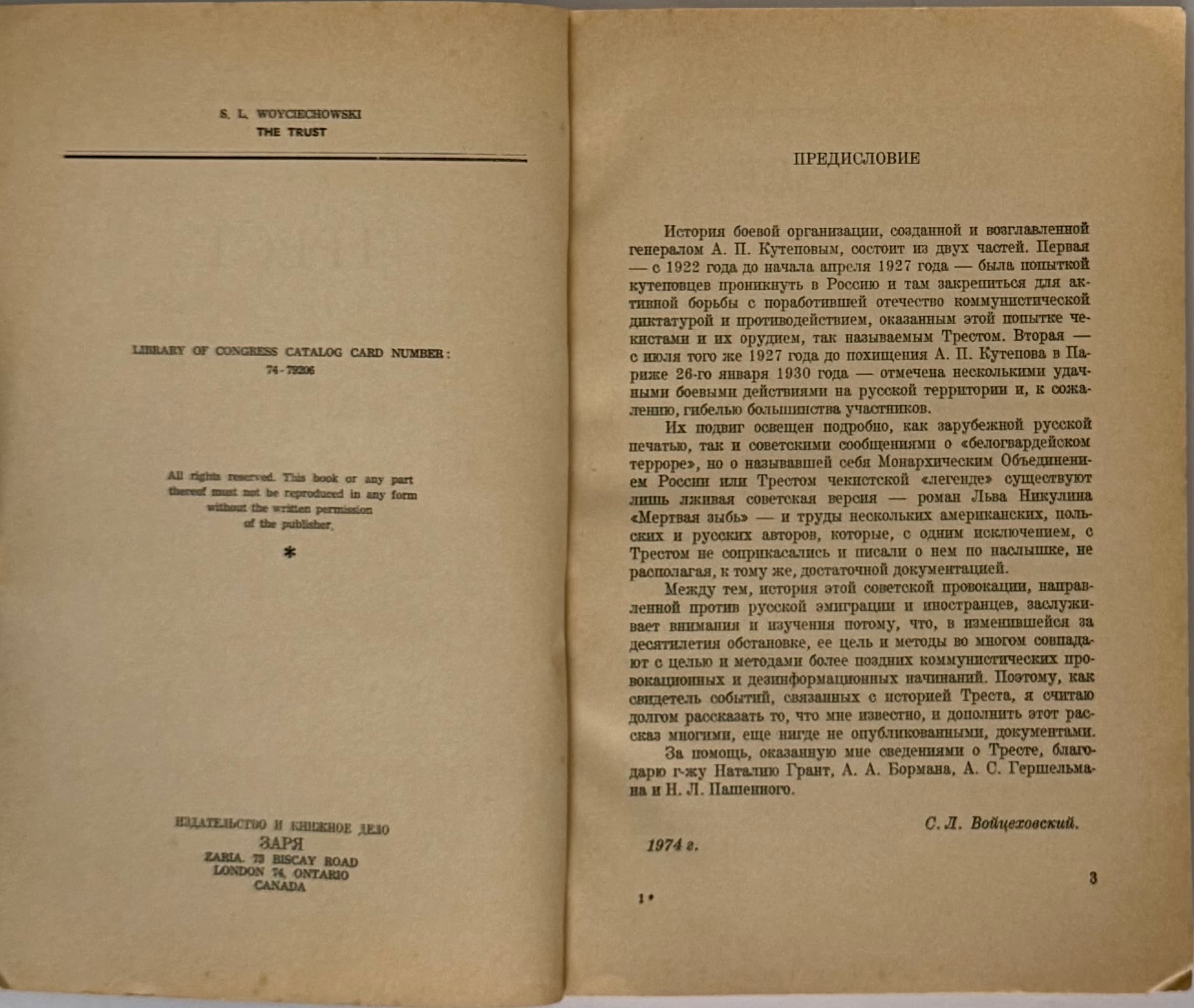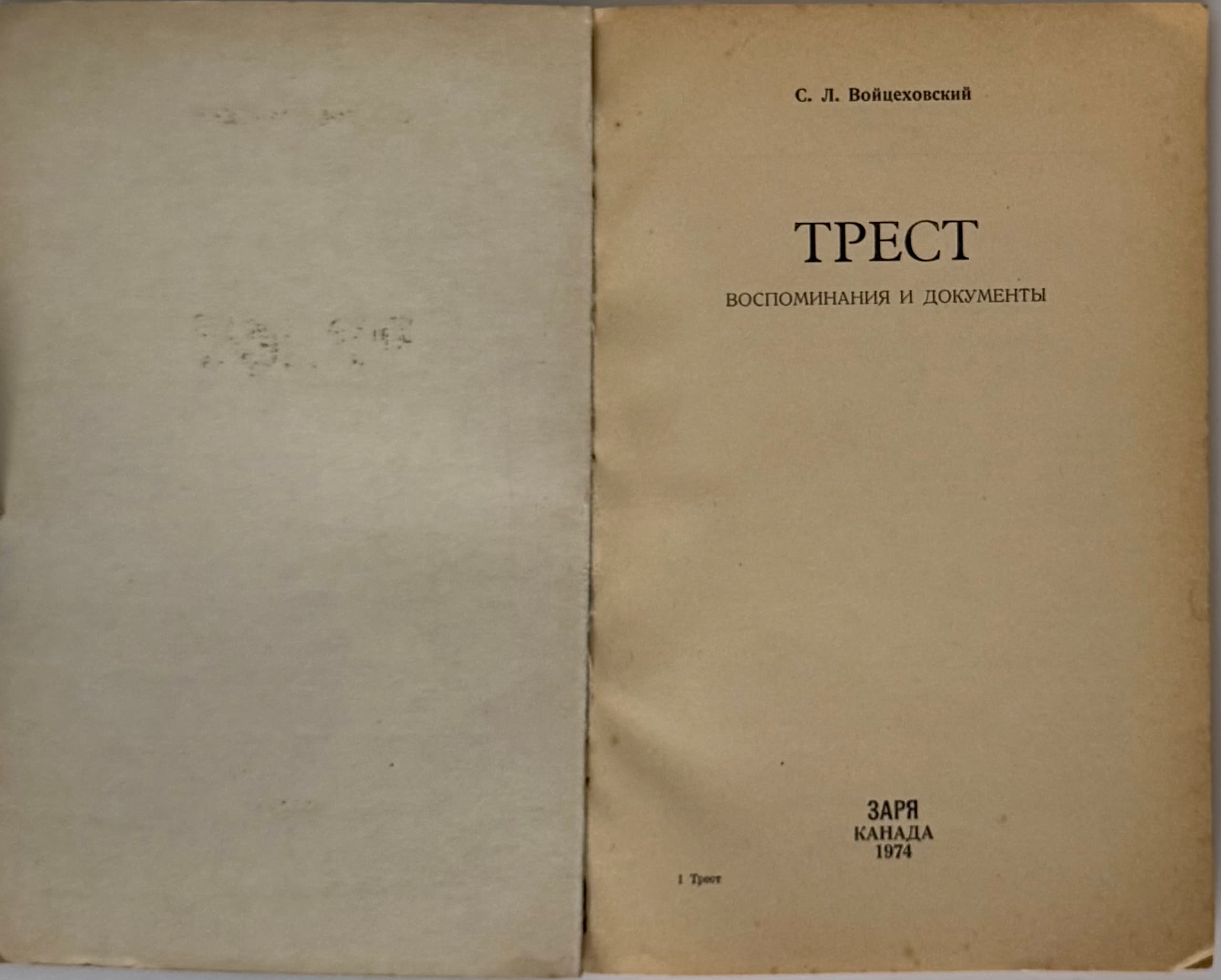 WOJCIECHOWSKI SIERGIEJ (1900-1984) Trest. Vospominania i dokumenty. [Trest. Trust. Memoirs and documents.] London (Ontario): Zarya, 1974.