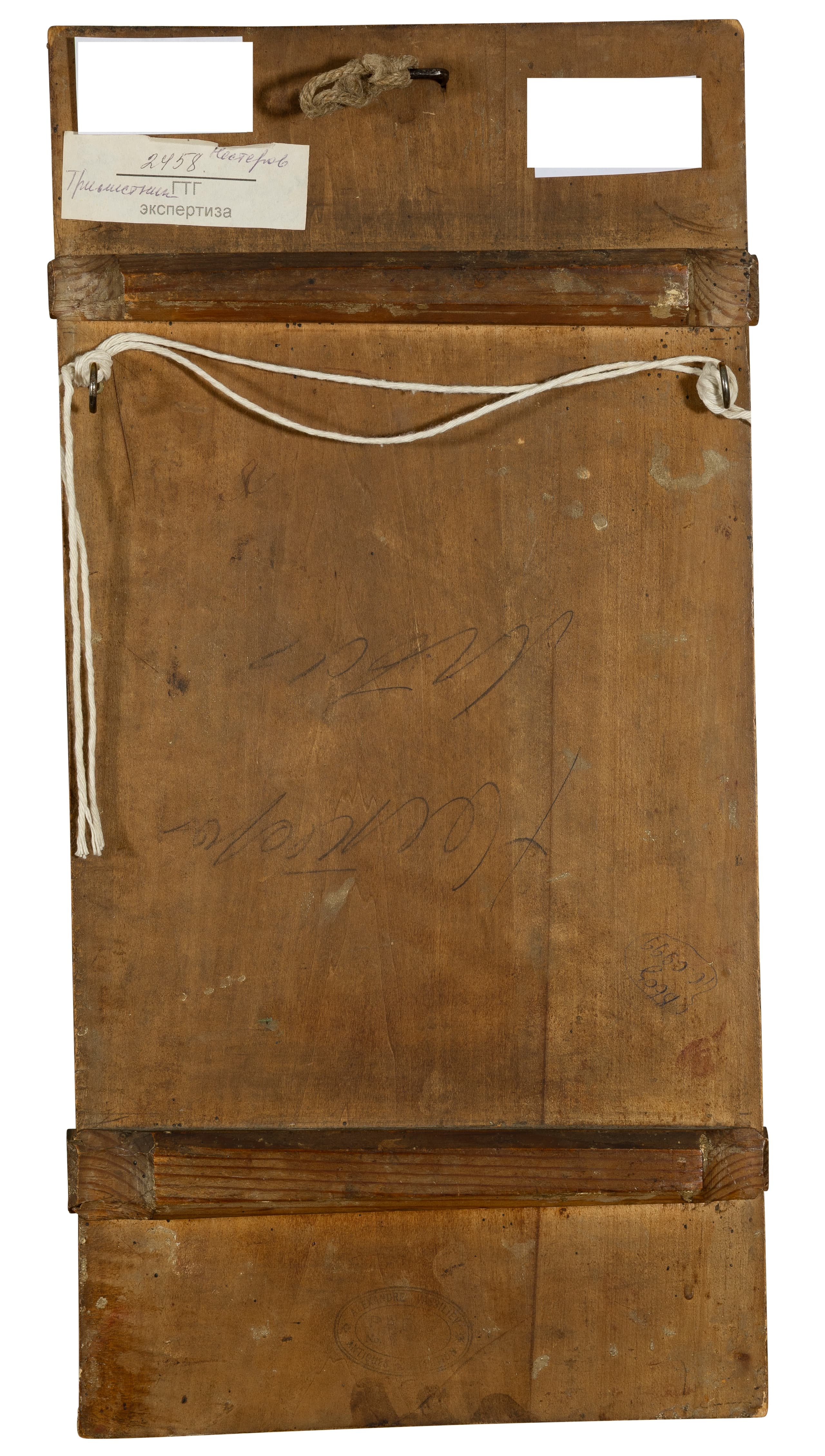 oil on panel 44.6 x 22.1 cm Provenance: Alexandre Vassiliev Antiques Collection Private European collection Literature: P. Klimov, Mikhail Nesterov, St Petersbourg: Zolotoy vek, 2008 (illustrated in colours N33) included in the Catalogue raisonné by P. Klimov, accompanied with an authenticity certificate by P. Klimov ⊕ This lot is under temporary importation and is subject to import tax (5.5%) (EU) and administrative customs broker fees.