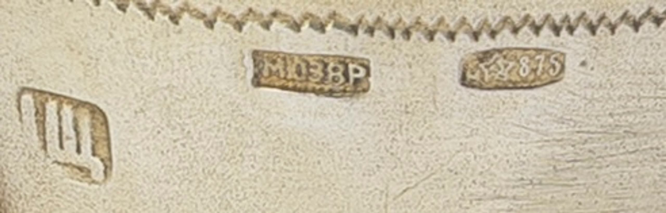 Hallmarks: silver standard marks ‘woman’s head in kokoshnik facing left and 84’, master’s mark in Cyrillic ‘I.Sh’ for Ilya Fomich Shchetinin (Moscow, 1892–1900), retesting mark of Moscow Jewellery Zavod in 1968 ‘MIU3R8’ and ‘M star 875’