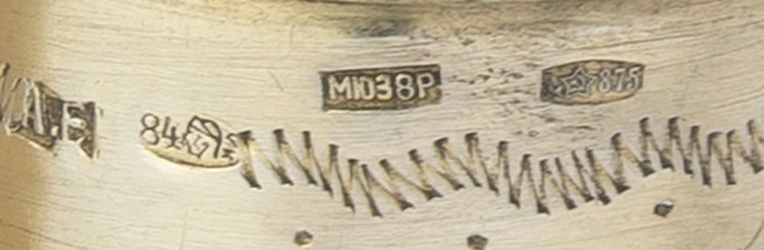 Hallmarks: silver standard marks ‘woman’s head in kokoshnik facing left and 84’, master’s mark in Cyrillic ‘A.E’ for Ilya Fomich Shchetinin (Moscow, 1892–1900), retesting mark of Moscow Jewellery Zavod in 1968 ‘MIU3R8’ and ‘M star 875’