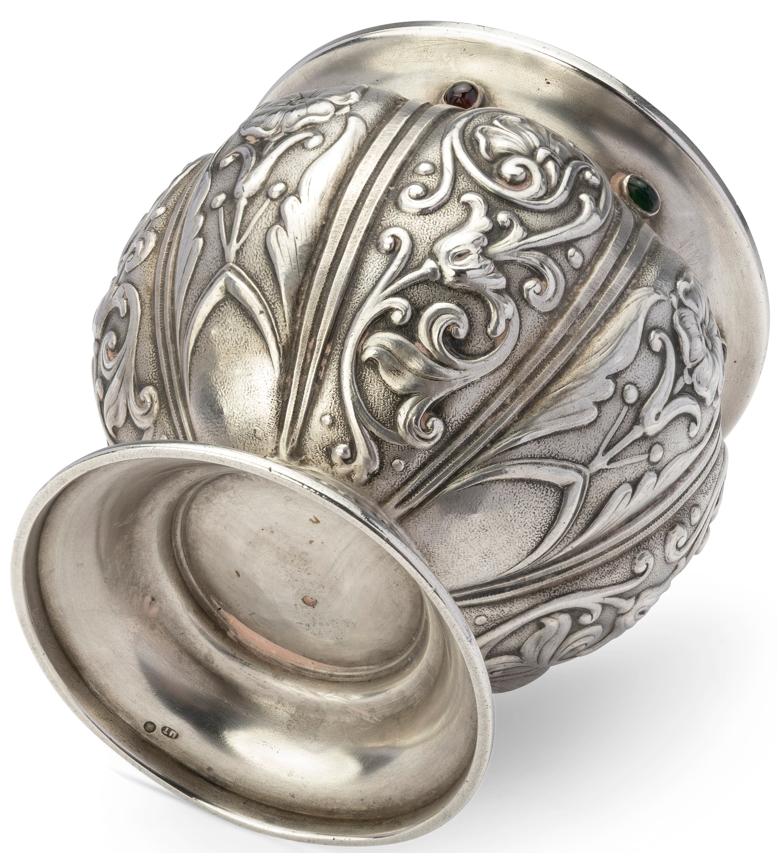 RUSSIAN SILVER BRATINA WITH GARNER AND GREEN GLASS CABOCHON 1908-1917