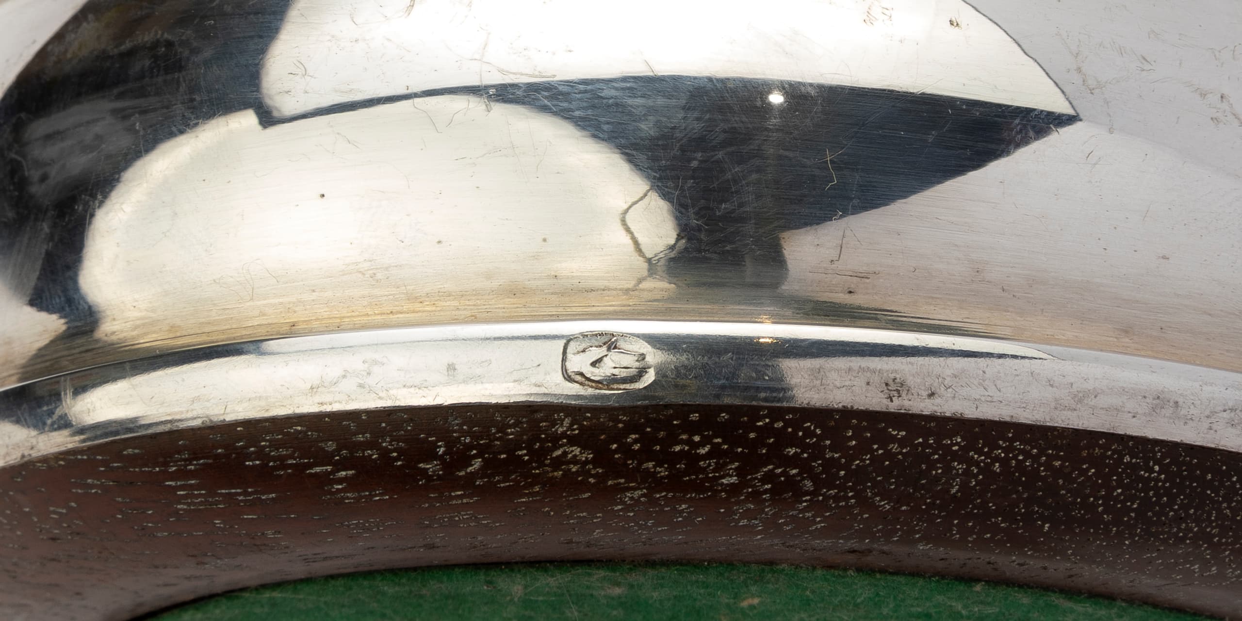 Hallmarks: 'hand in oval' H. 4 cm, D. 12.3 cm