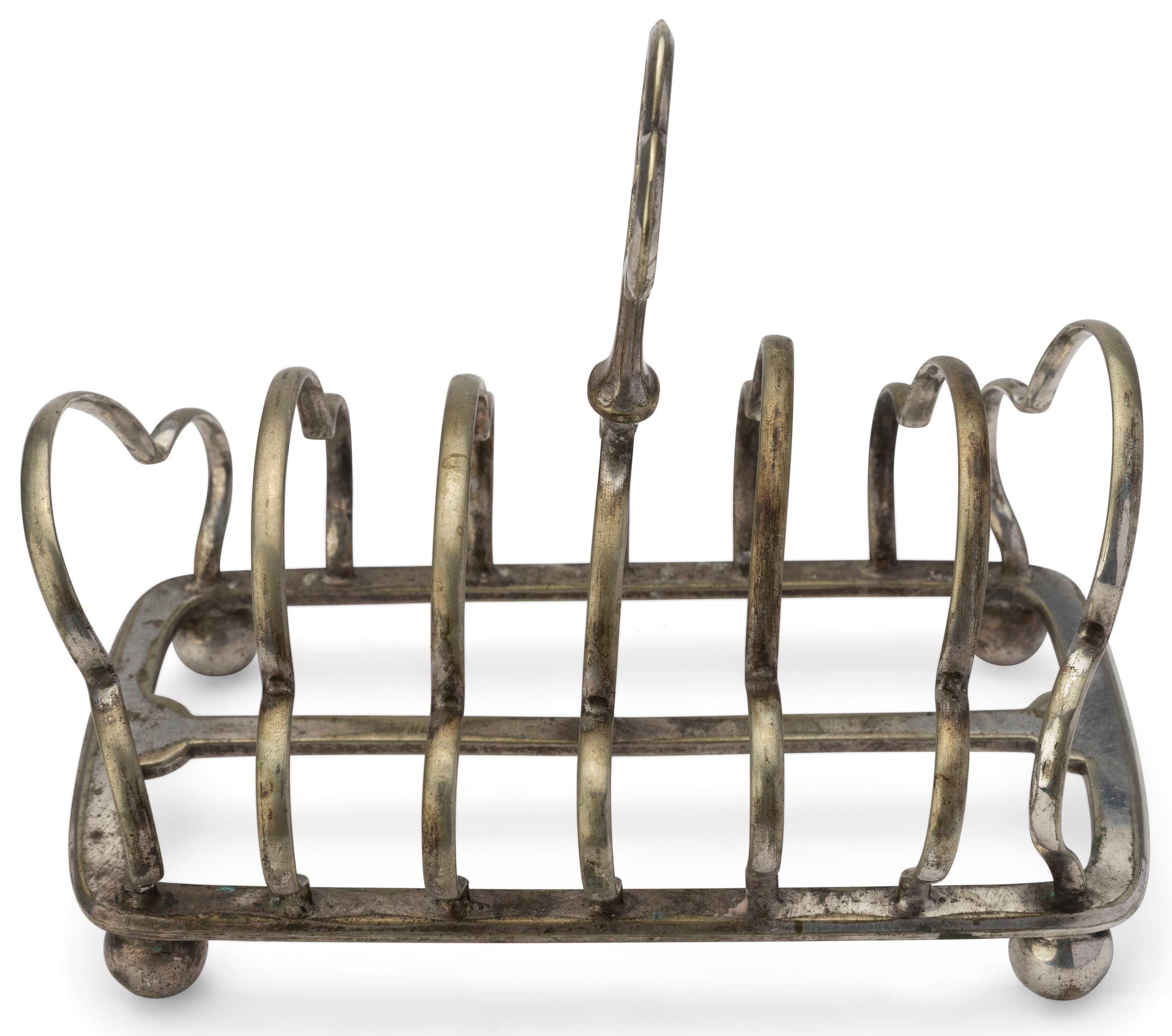 featuring heart-shaped motifs and ball feet, typical of antique British serving accessories