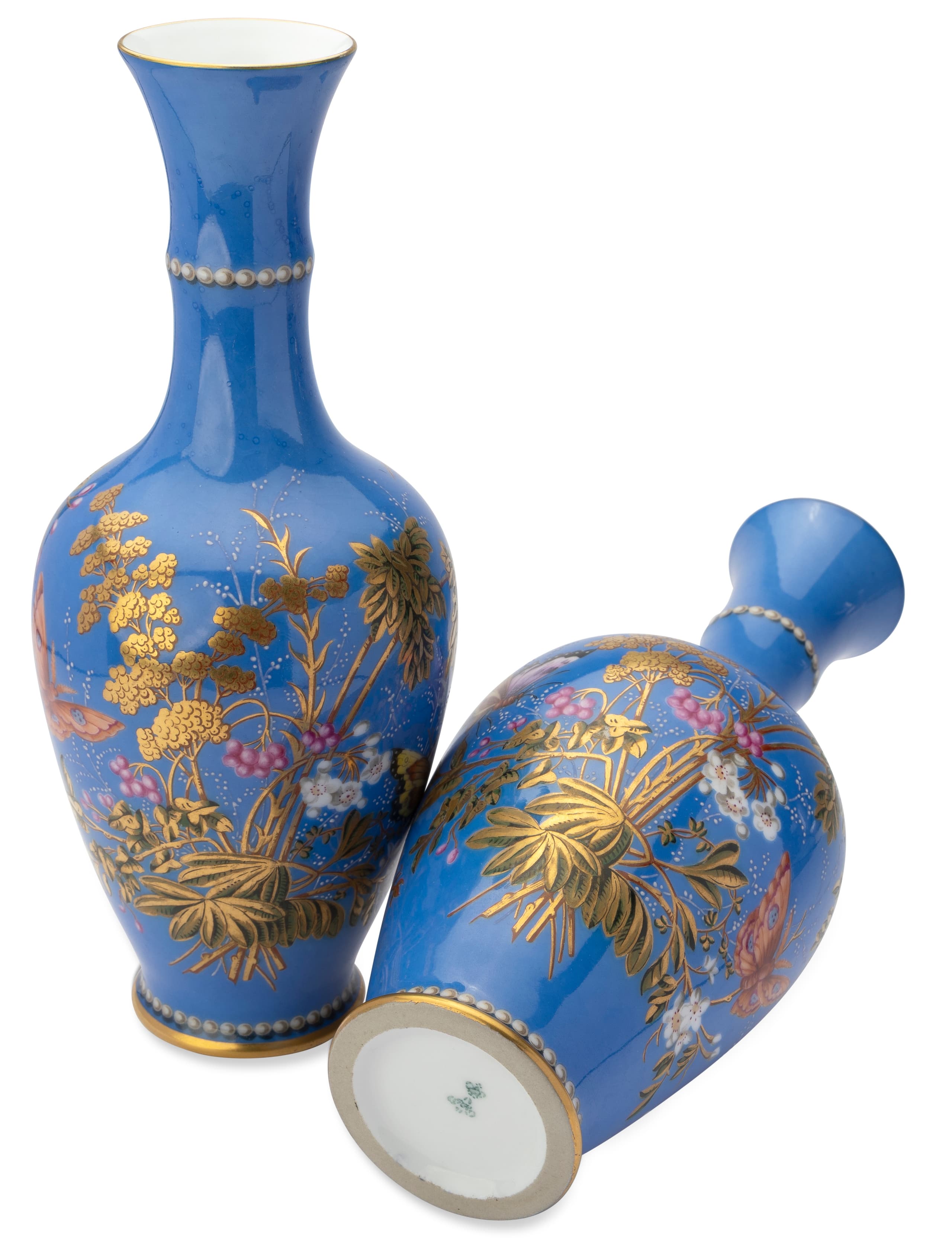 finely painted in polychrome enamels with butterflies and flowering branches, heightened with gilt