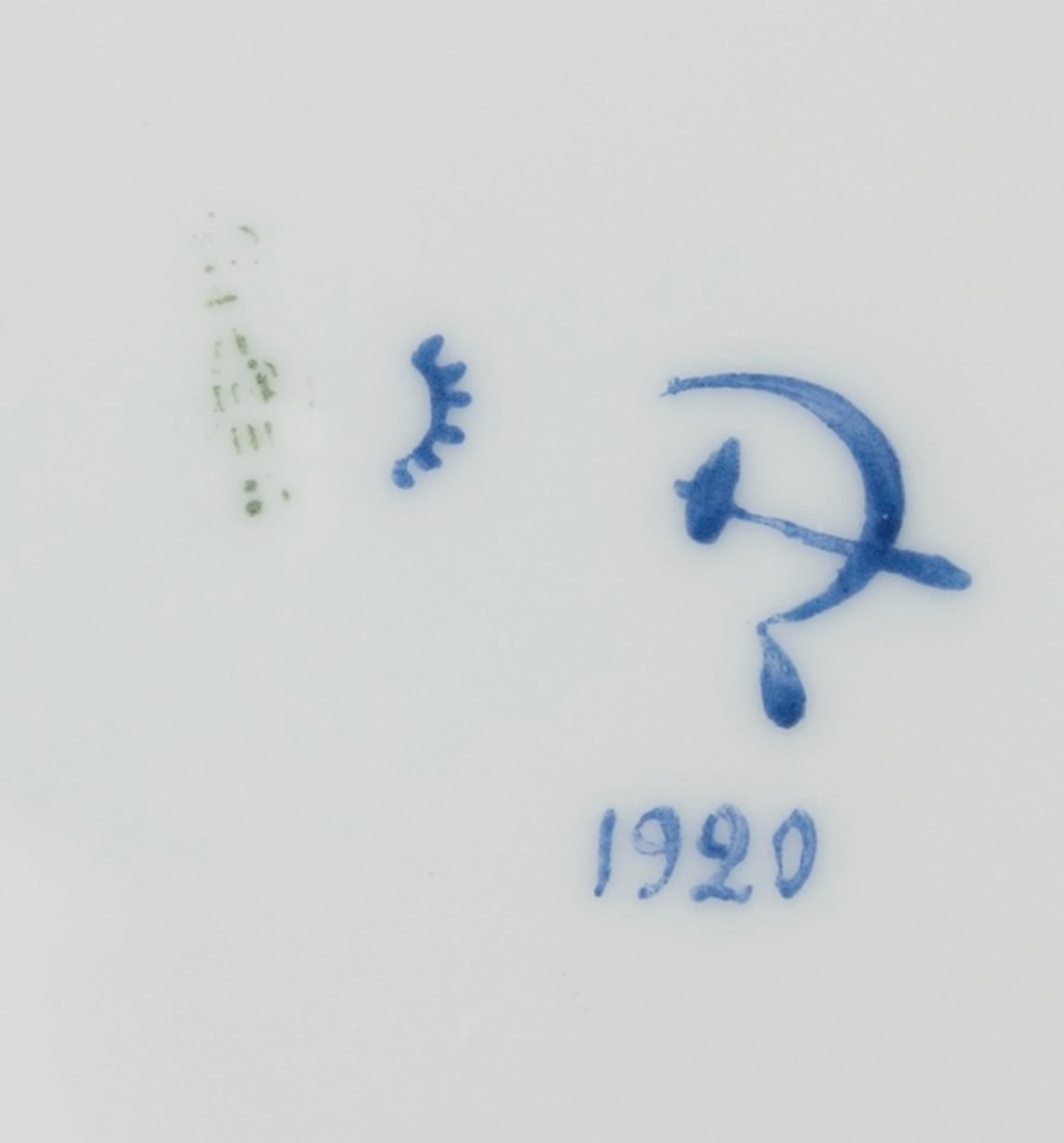 Marks: green underglaze AIII, blue overglaze mark: hammer, sickle, cog, and date – 1920