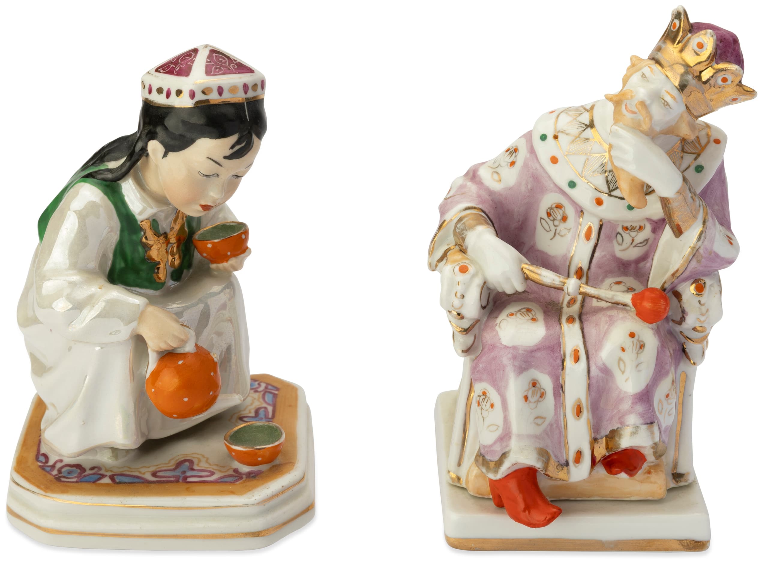 TWO SOVIET PORCELAIN SCULPTURES, 1956 Little hostess and Tsar Dadon Models by Olga Mikhailovna Bogdanova Dulevo porcelain manufactory, Moscow region