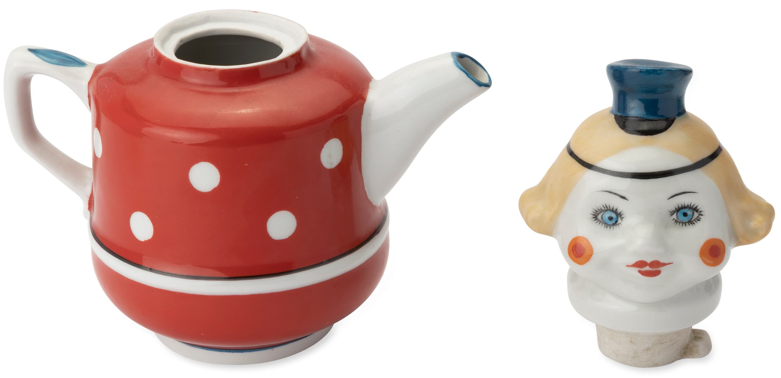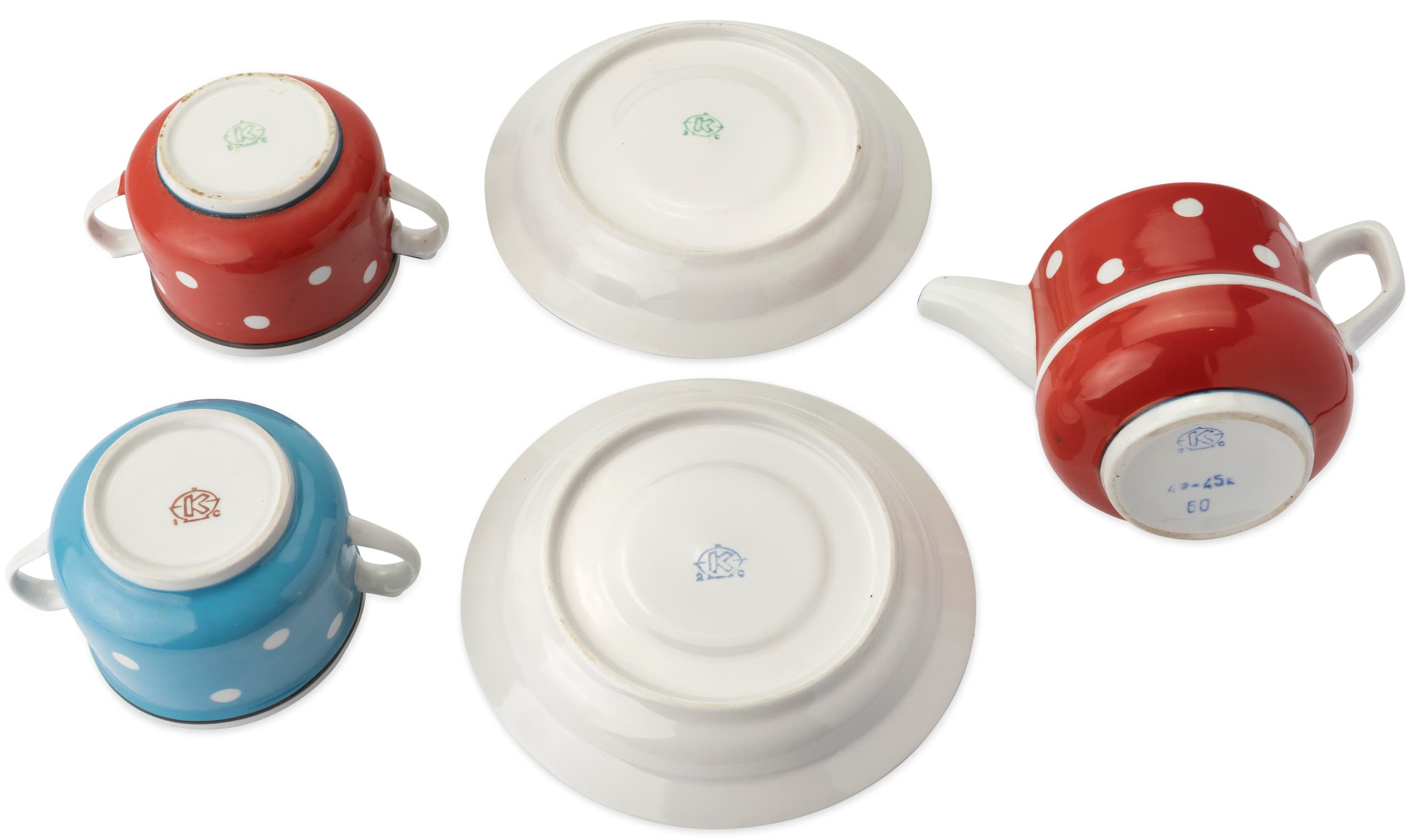 cups: D. 8 cm; saucer: D. 15 cm, teapot H. 17.5 cm