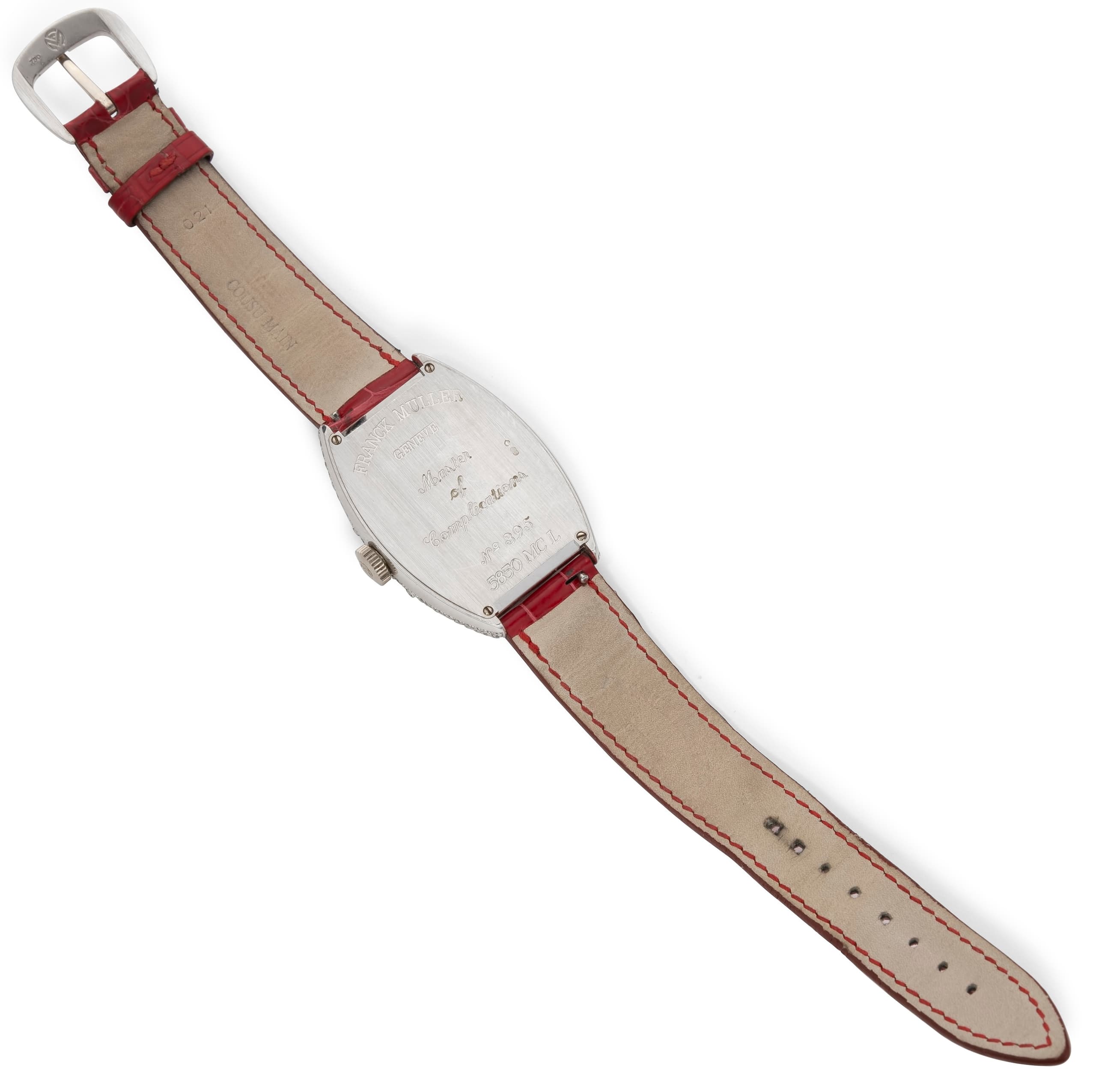 Case: 4.5 x 3.5 cm, tonneau shape, 18k white gold, engraved ‘Frank Muller Genève Master of Complications’, bezel set with diamonds