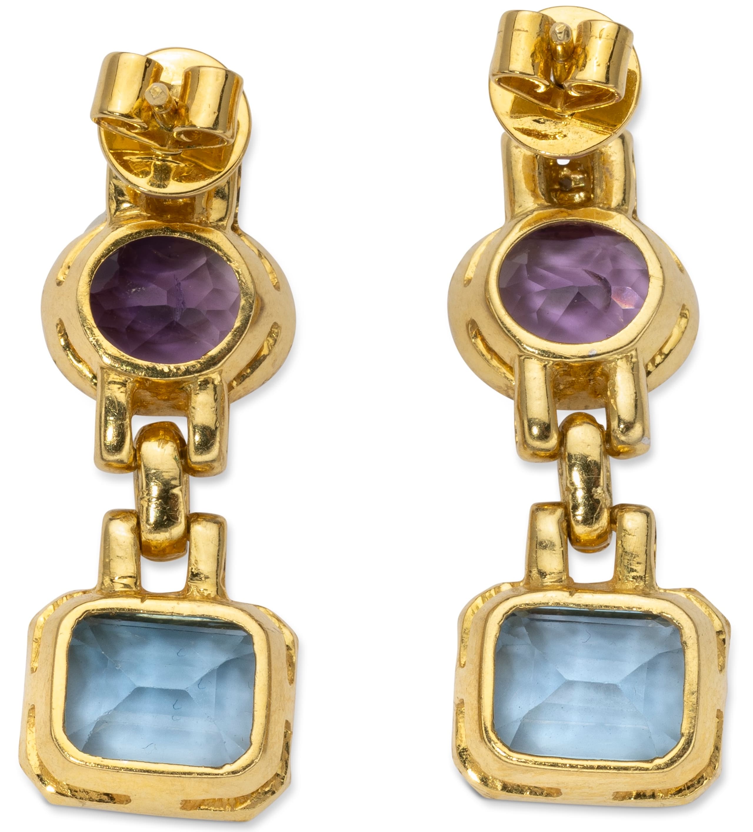 18K YELLOW GOLD, DIAMOND, AMETHYST AND TOPAZ EARRINGS