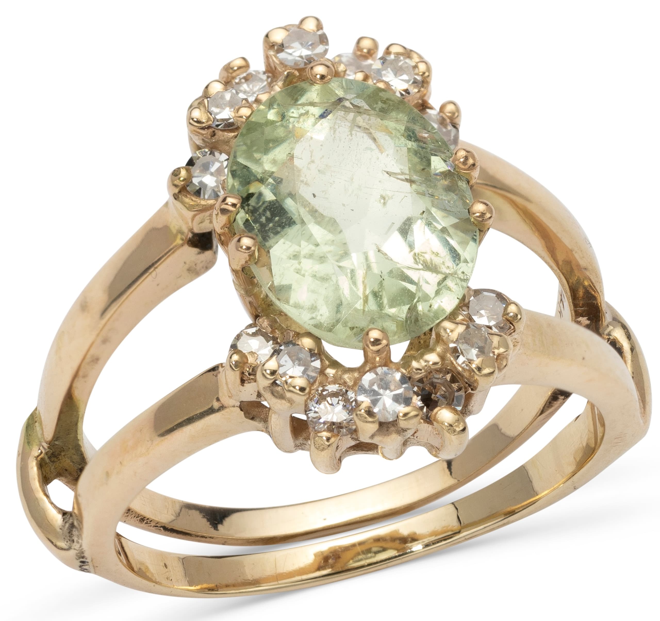 14k yellow gold ring set with a citrine surrounded by brilliant-cut diamonds weighing approximately 0.10 ct. Hallmark: ‘14K’ size 52 total gross weight: 5.56 gr.