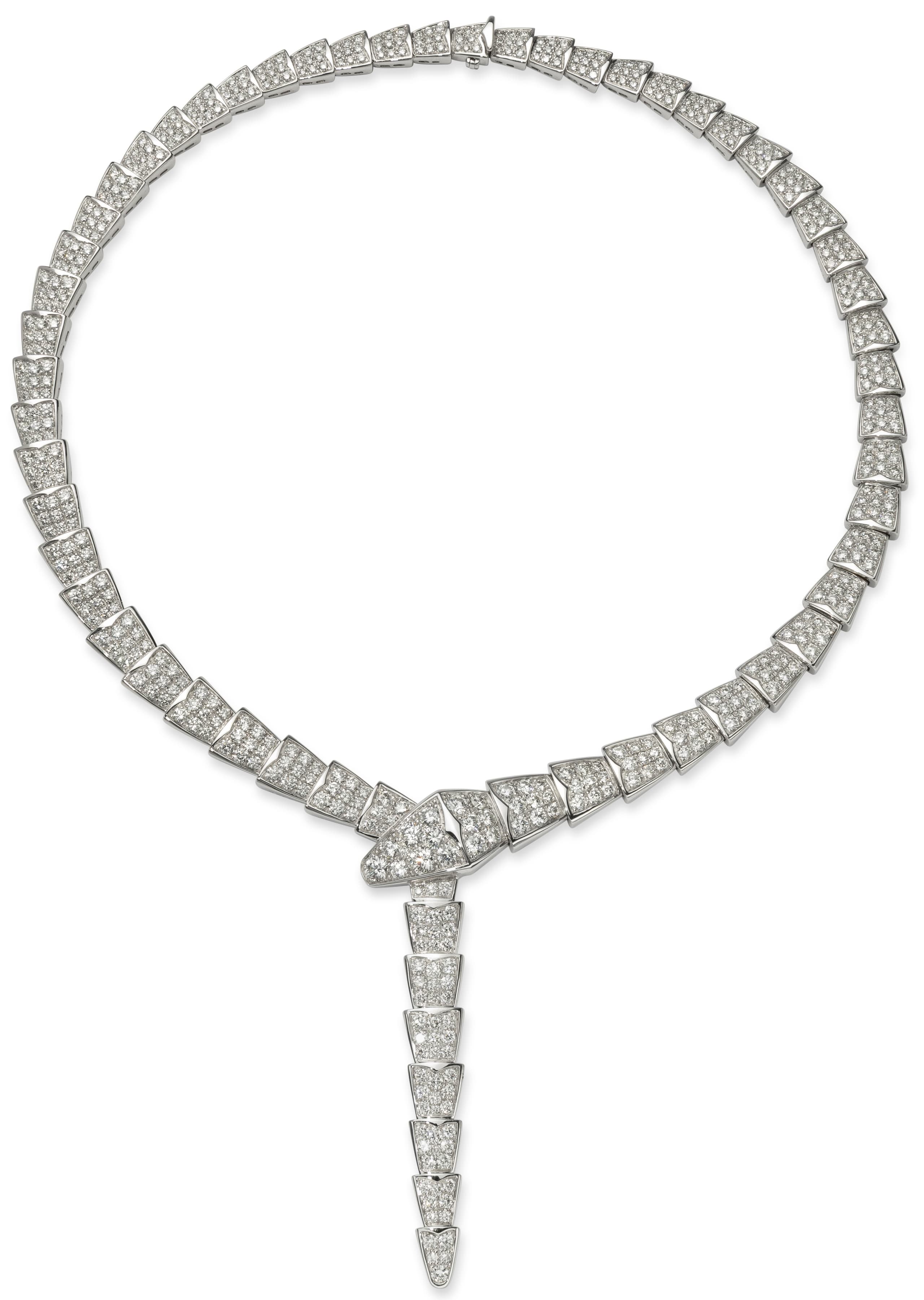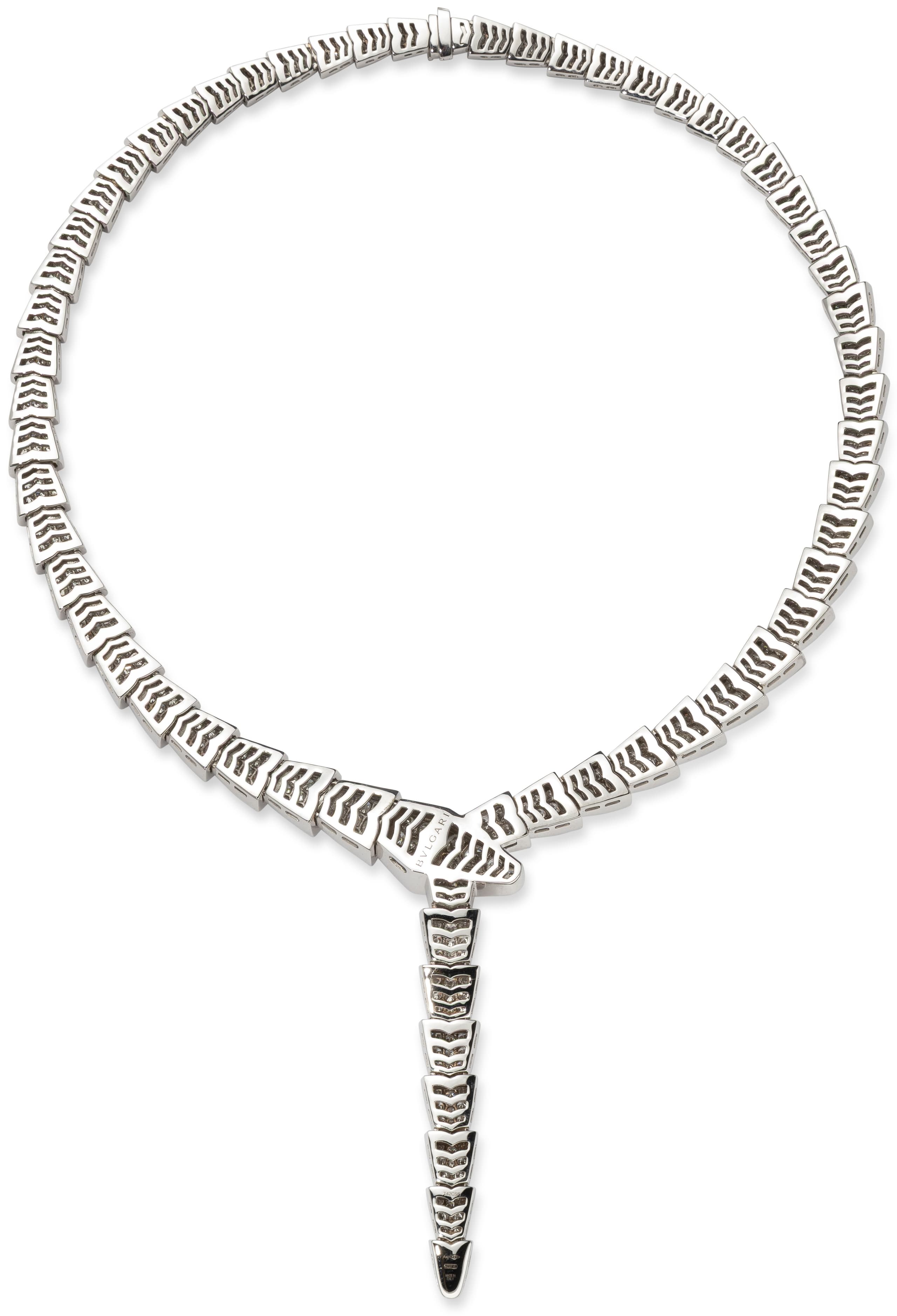 Necklace Serpenti Viper, reference 348165, in 18k white gold, full pavé diamonds, weight approximately 14.74 ct.
