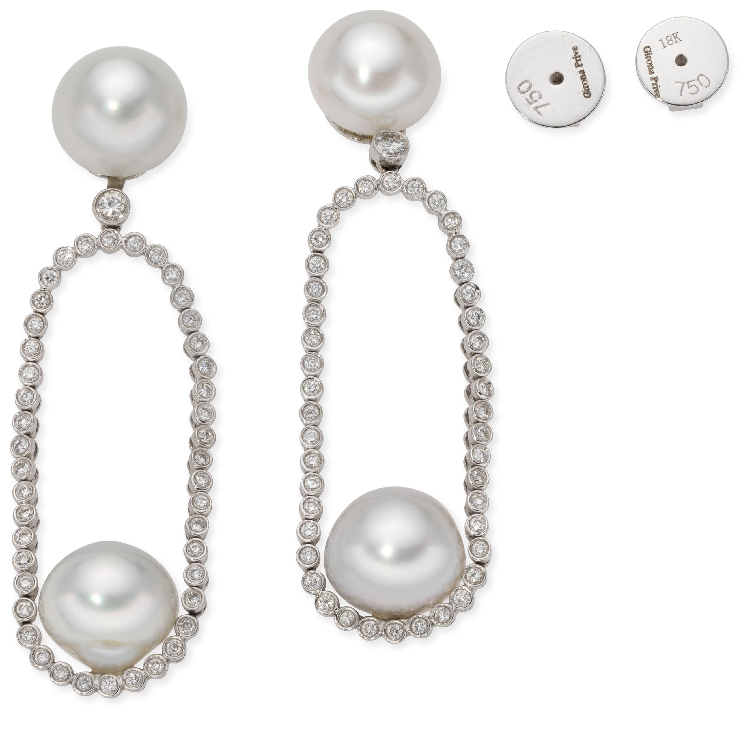 GIRONA PRIVÉ 18K WHITE GOLD DIAMOND AND PEARL TEARDROP EARRINGS