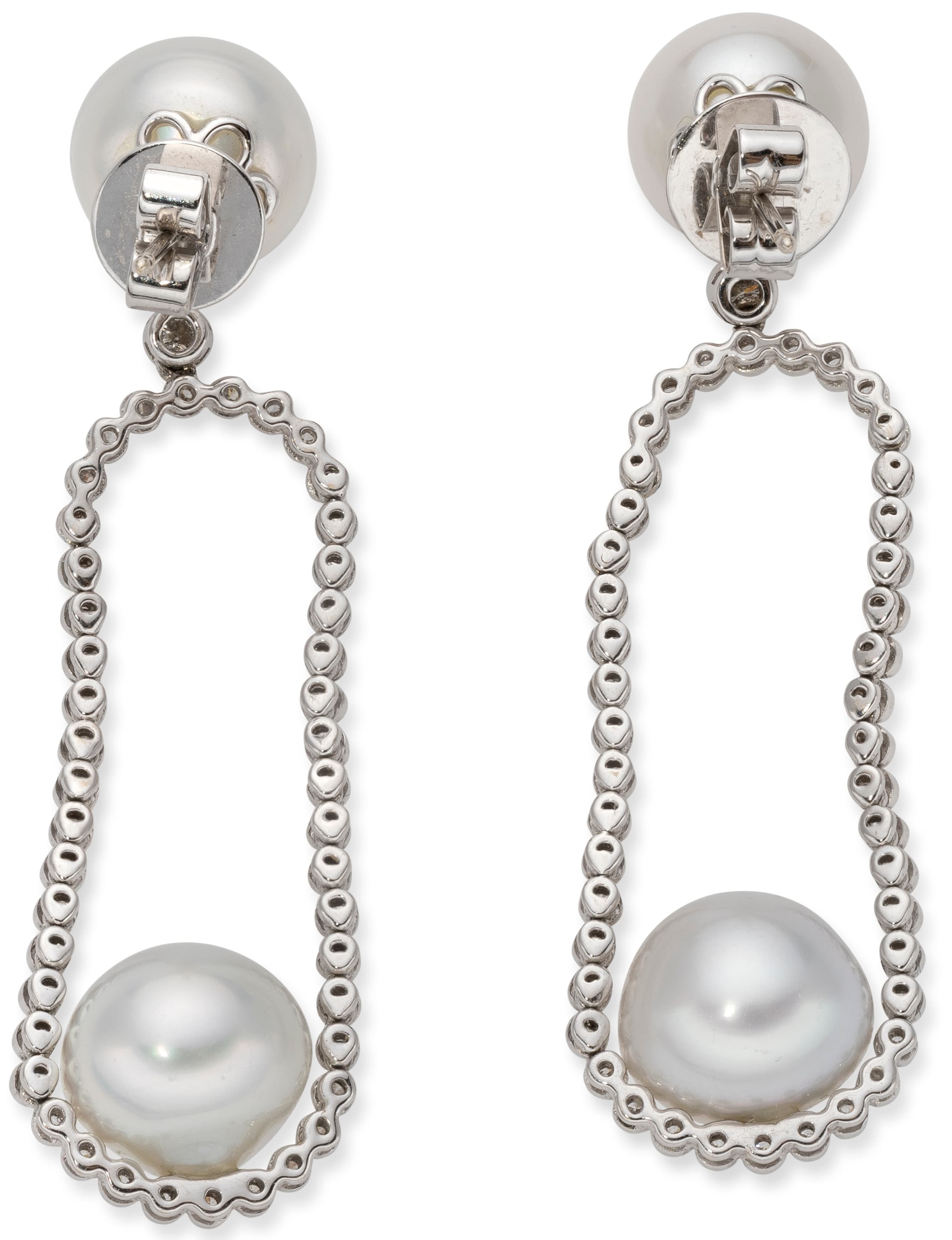 pair of 18k white gold earrings set with diamonds weighing approximately 0.75 ct. and four Akoya cultured pearls approximately 10 mm