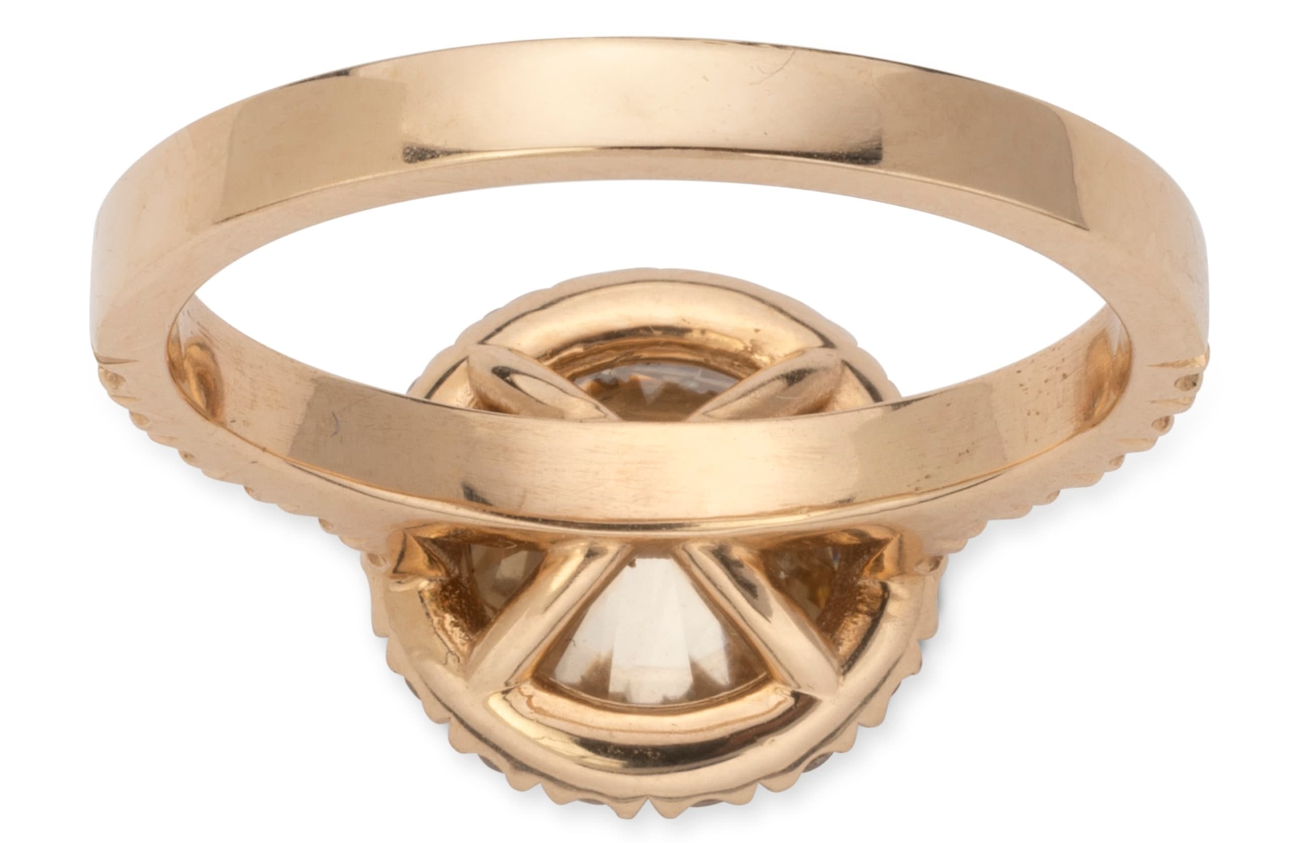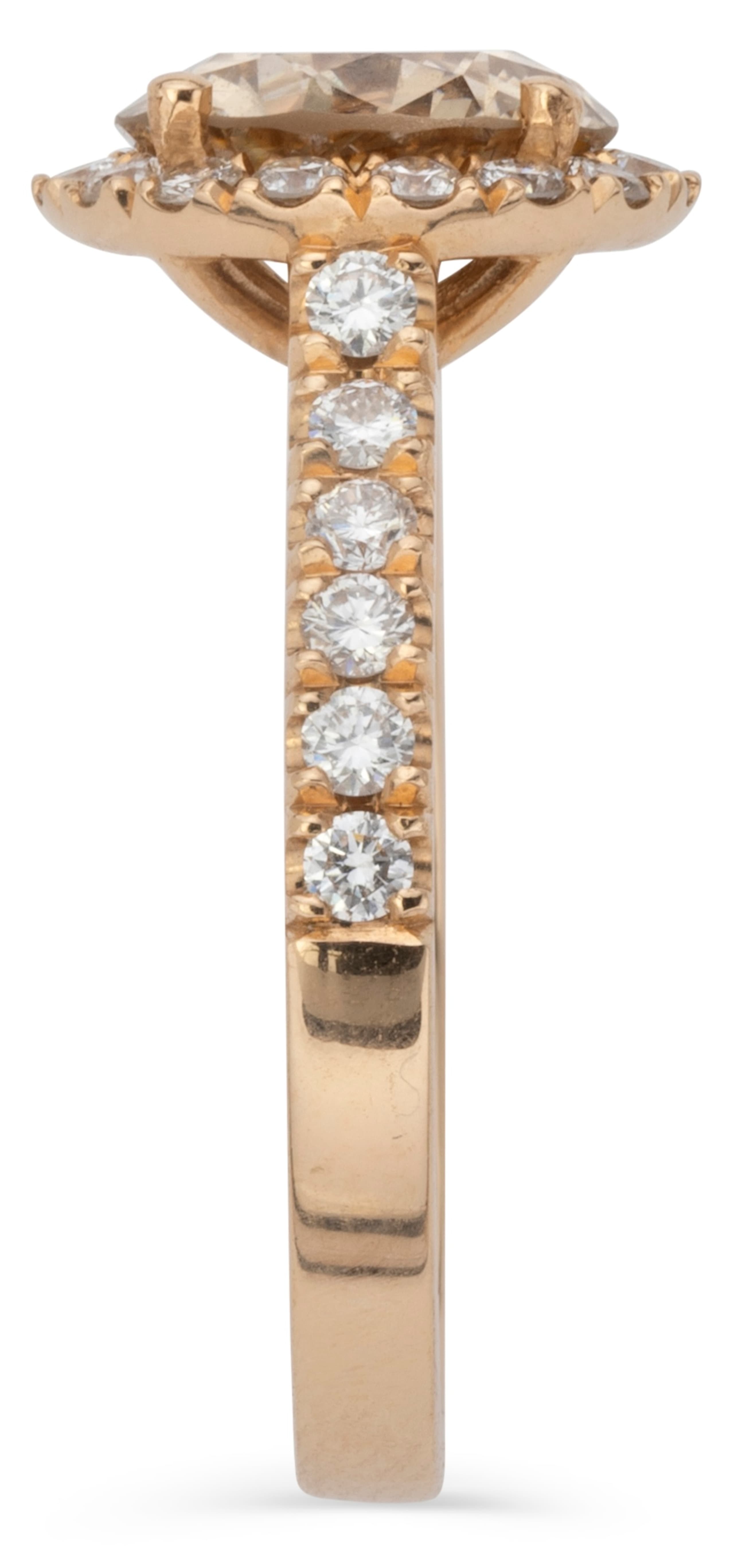 Ring in 18k gold set with a fancy brown/yellow diamond weighing approximately 2 ct. (clarity: VVS), surrounded by diamonds on the stone and band weighing approximately 0.60 ct.