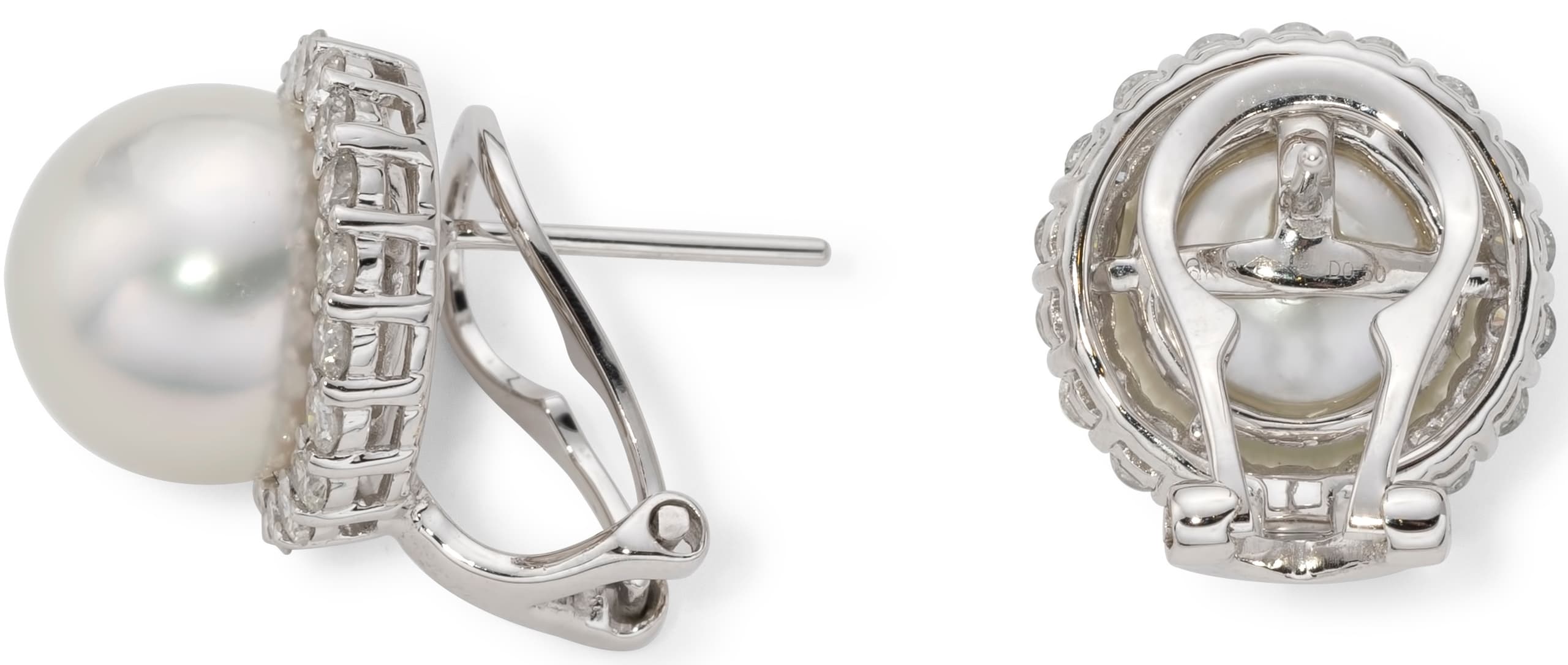 18K WHITE GOLD, DIAMOND AND PEARL EARRINGS