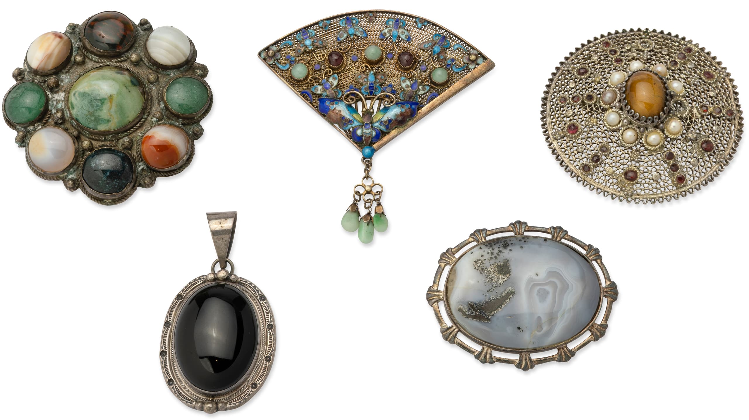 iii) Silver brooch with agate