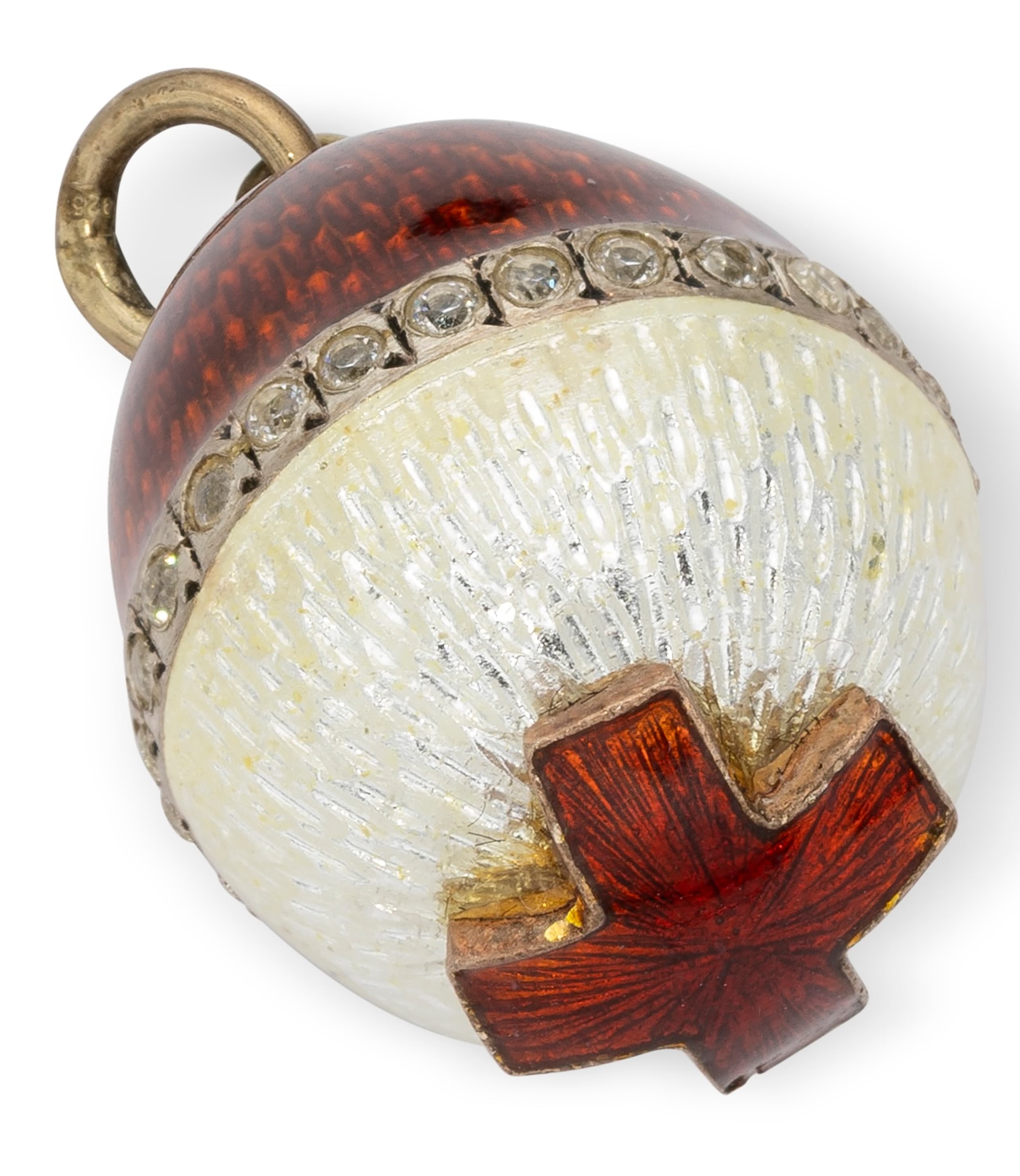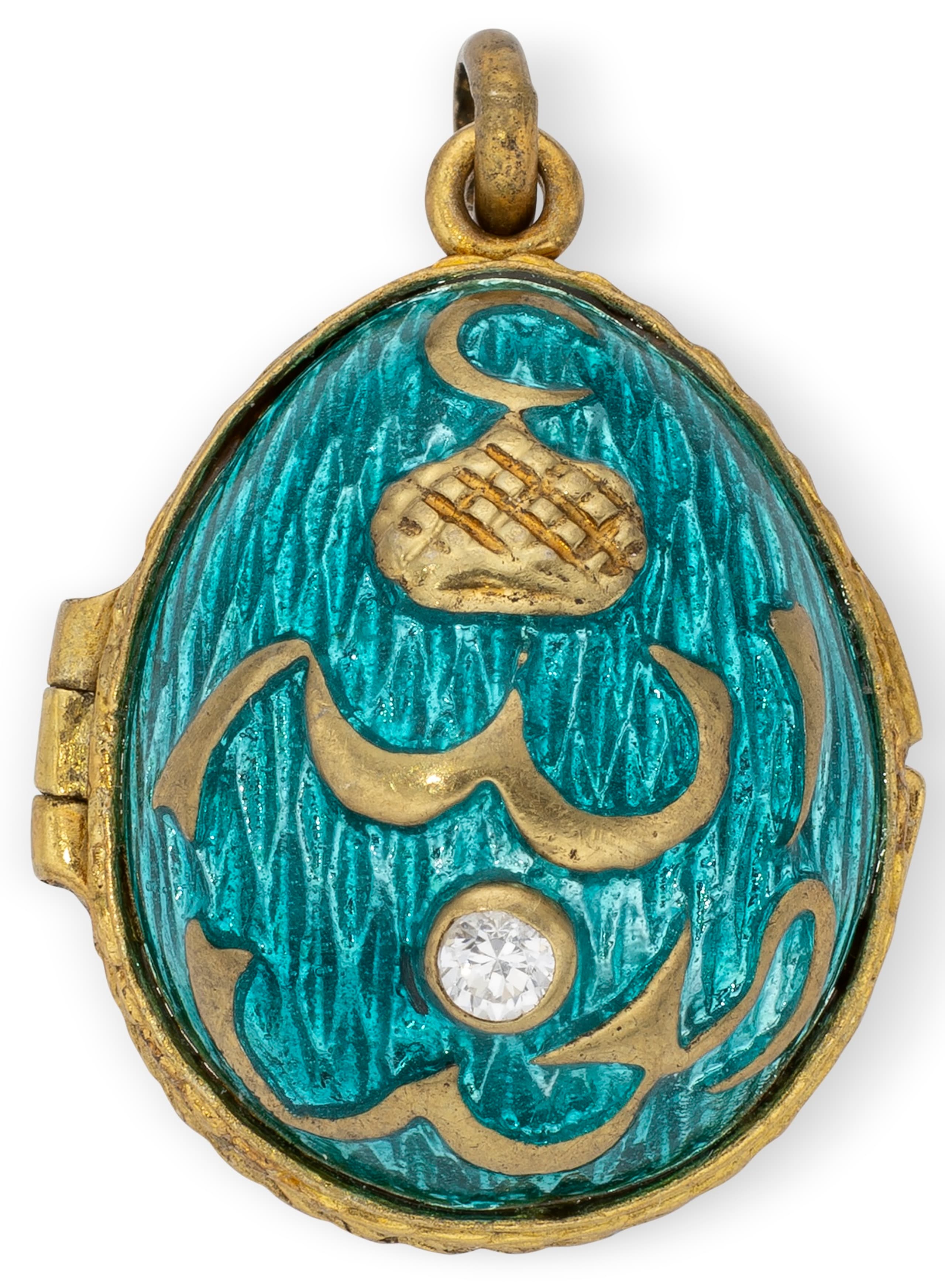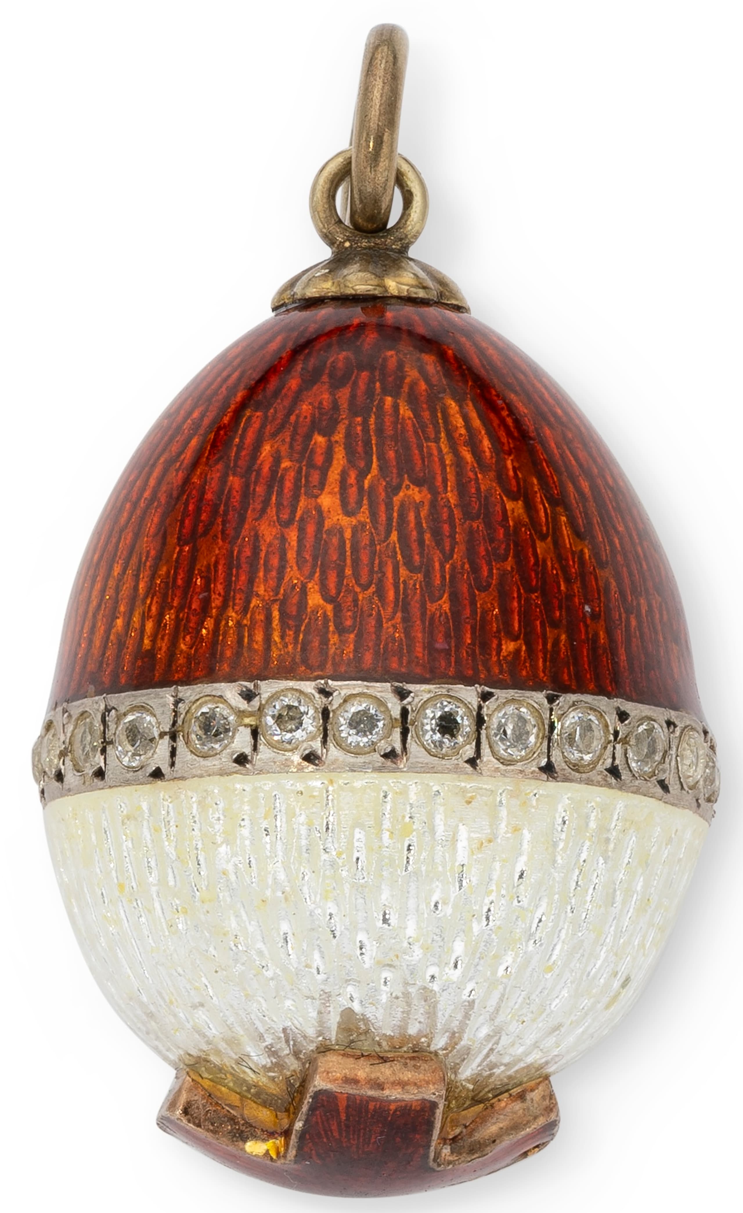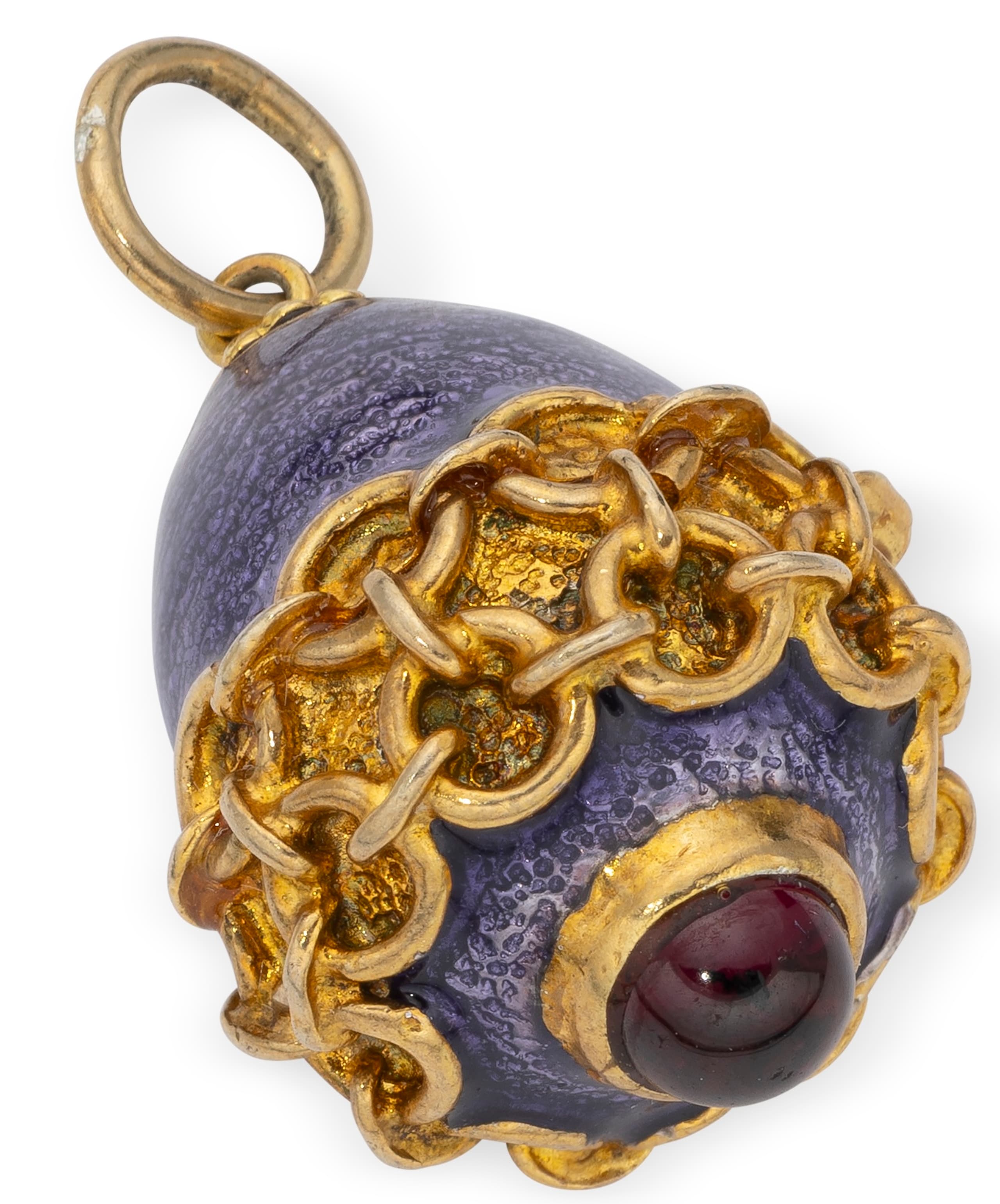 SET OF FOUR 'EASTER EGGS' SILVER-GILT ENAMEL AND GEMS PENDANTS