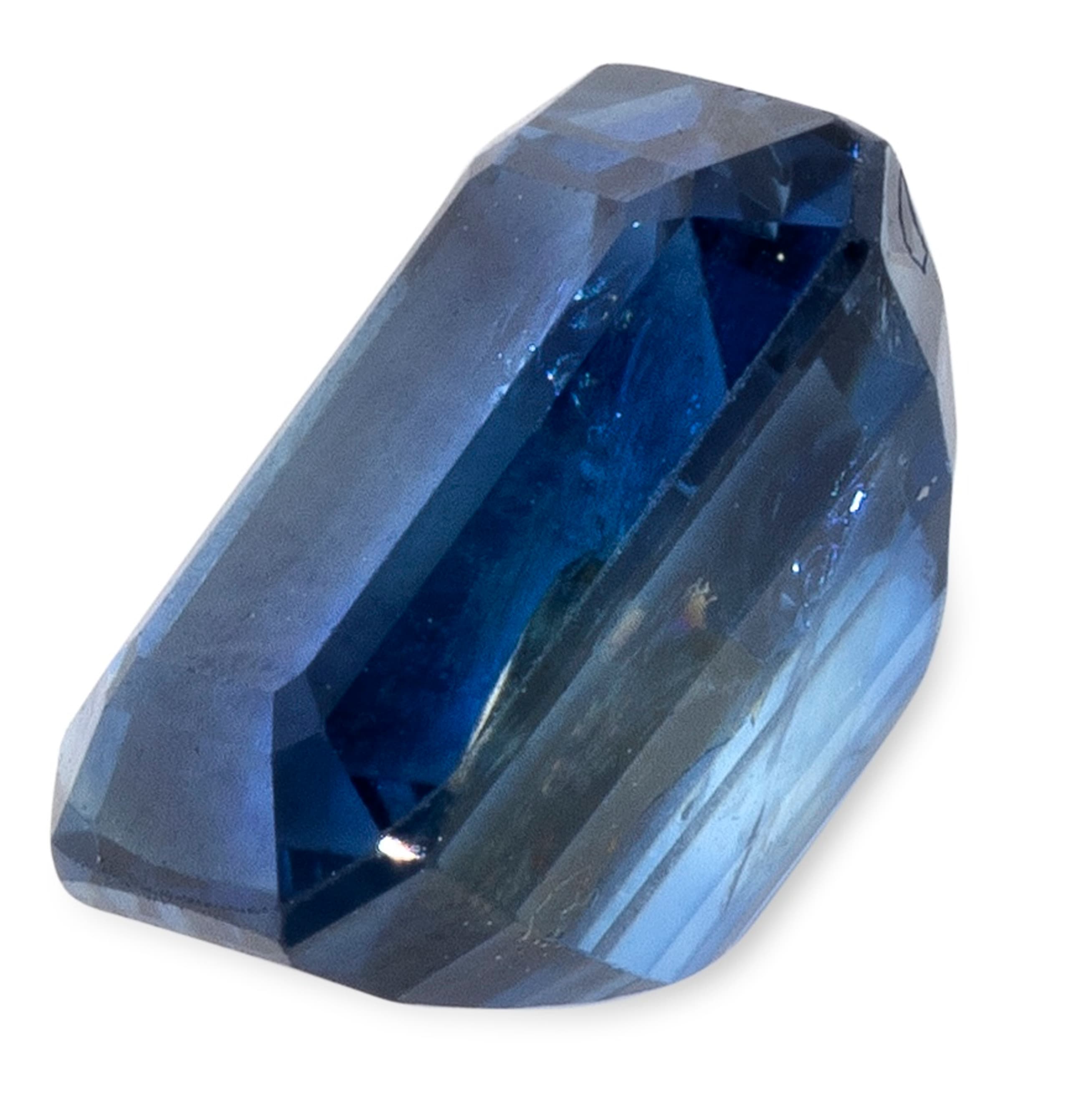 blue natural emerald-cut sapphire weighing approximately 2.97 ct., no indication of treatment or heating, origin Tanzania 8.41 x 6.23 x 5.46 mm With gemstone report