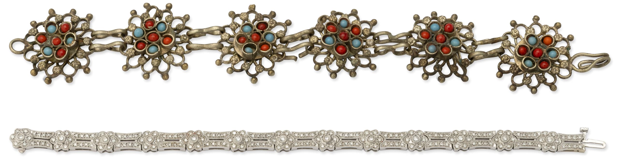 ii) Bracelet with orange and blue stones