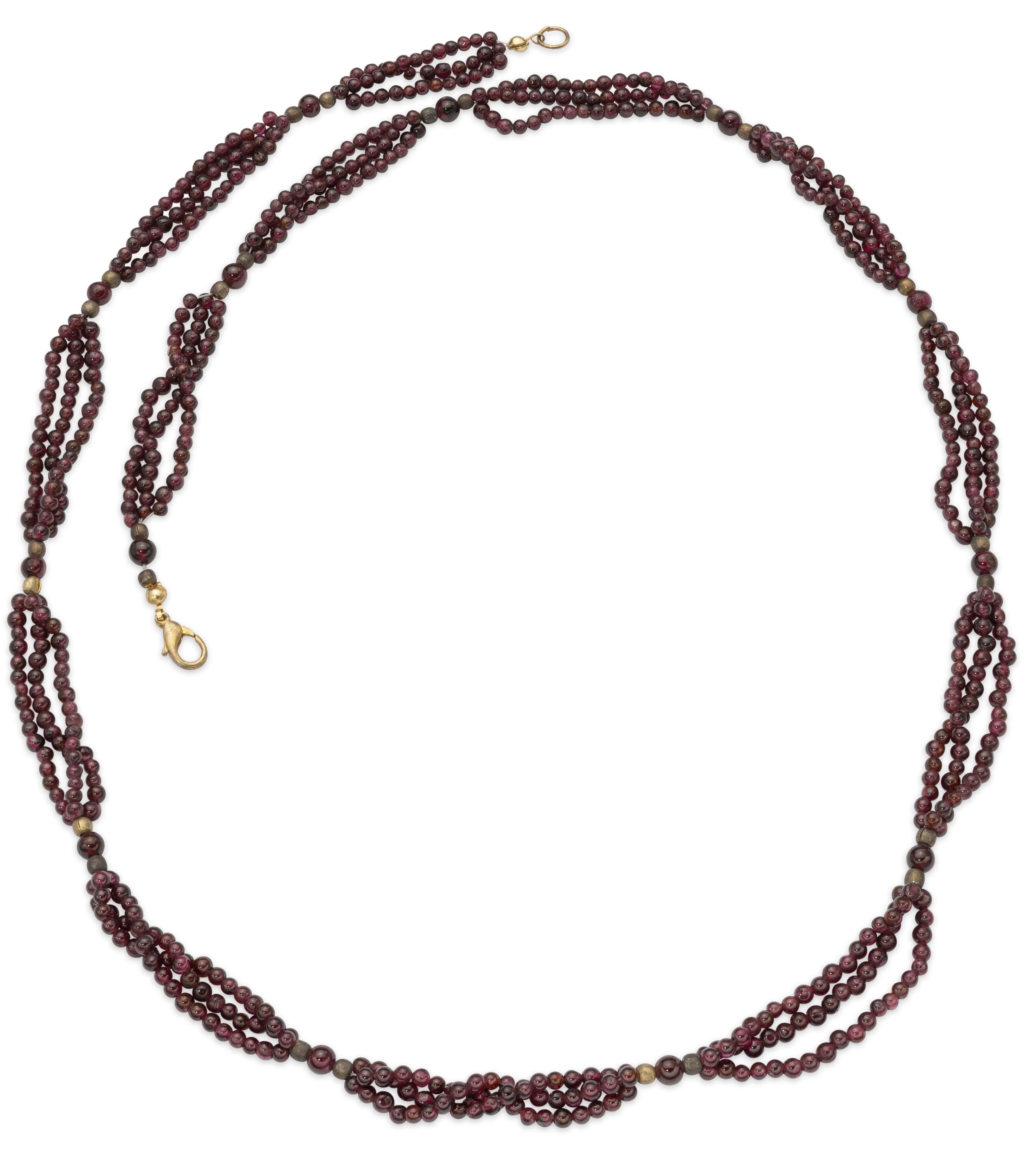 necklace set with garnet beads L. 81 cm gross weight: 47 gr.