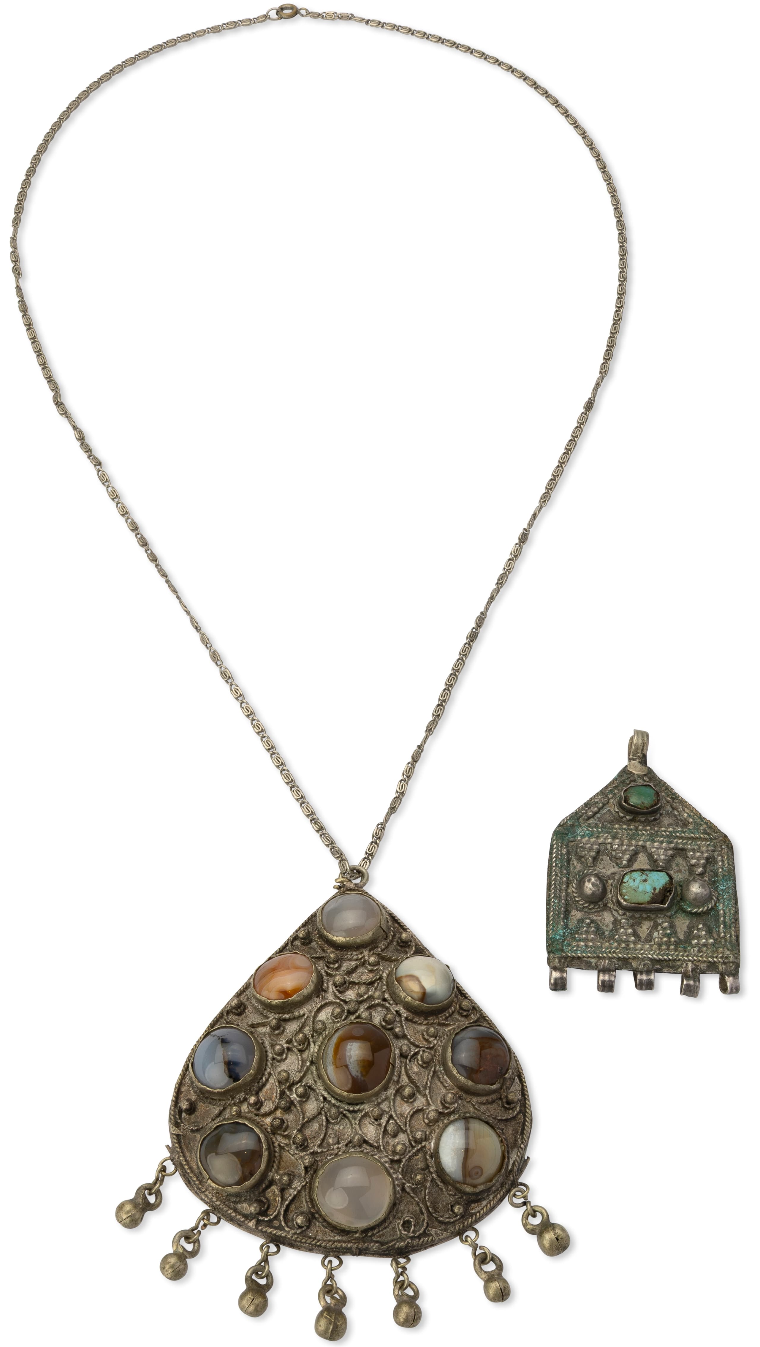 Lot including a necklace with chalcedony stones and a pendant. i) Necklace with chalcedony stones ii) Pendant