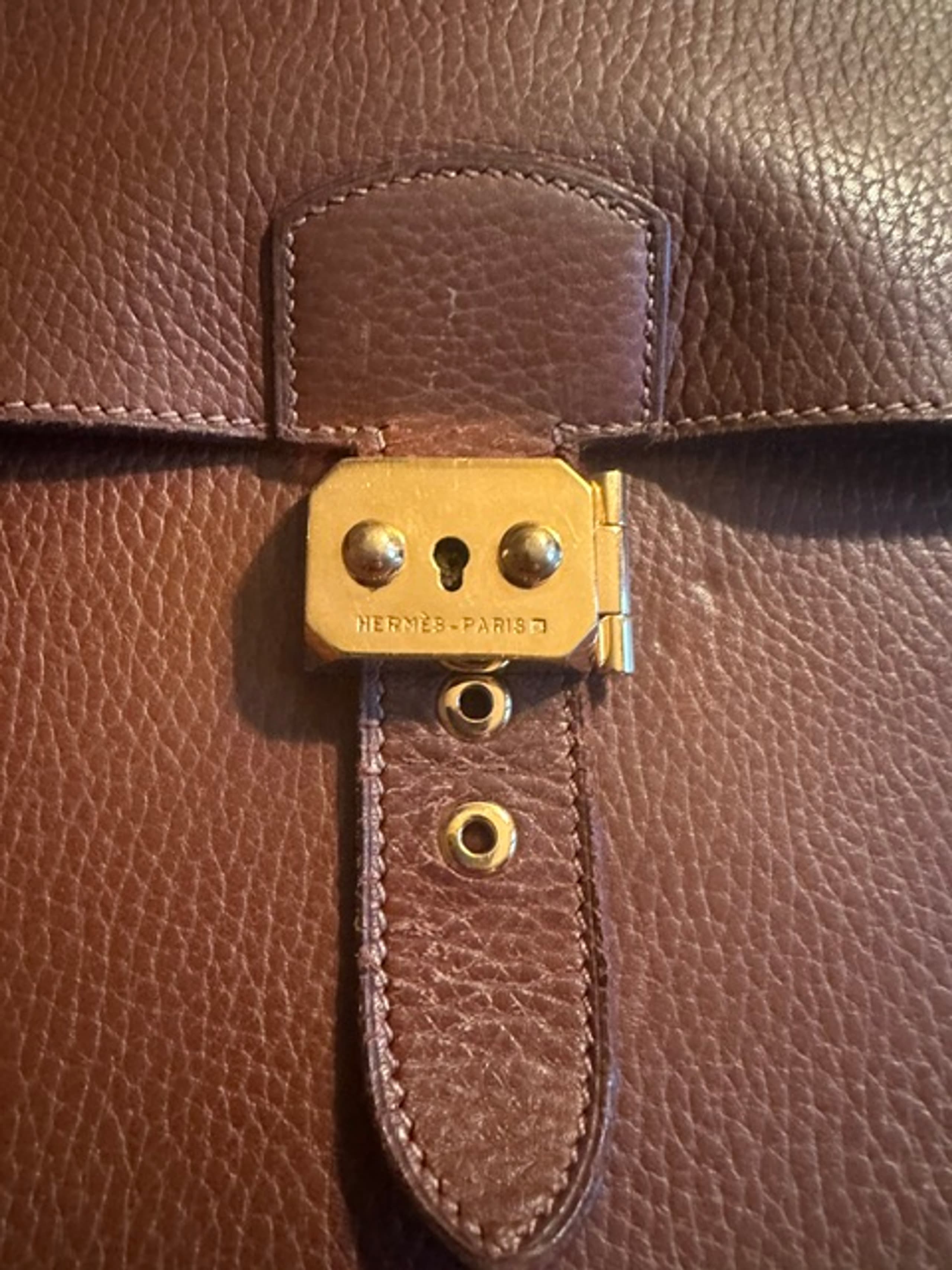 engraved: ‘HERMÈS PARIS’ 40 × 28 × 10 cm with its keys condition: sign of wear on the handle