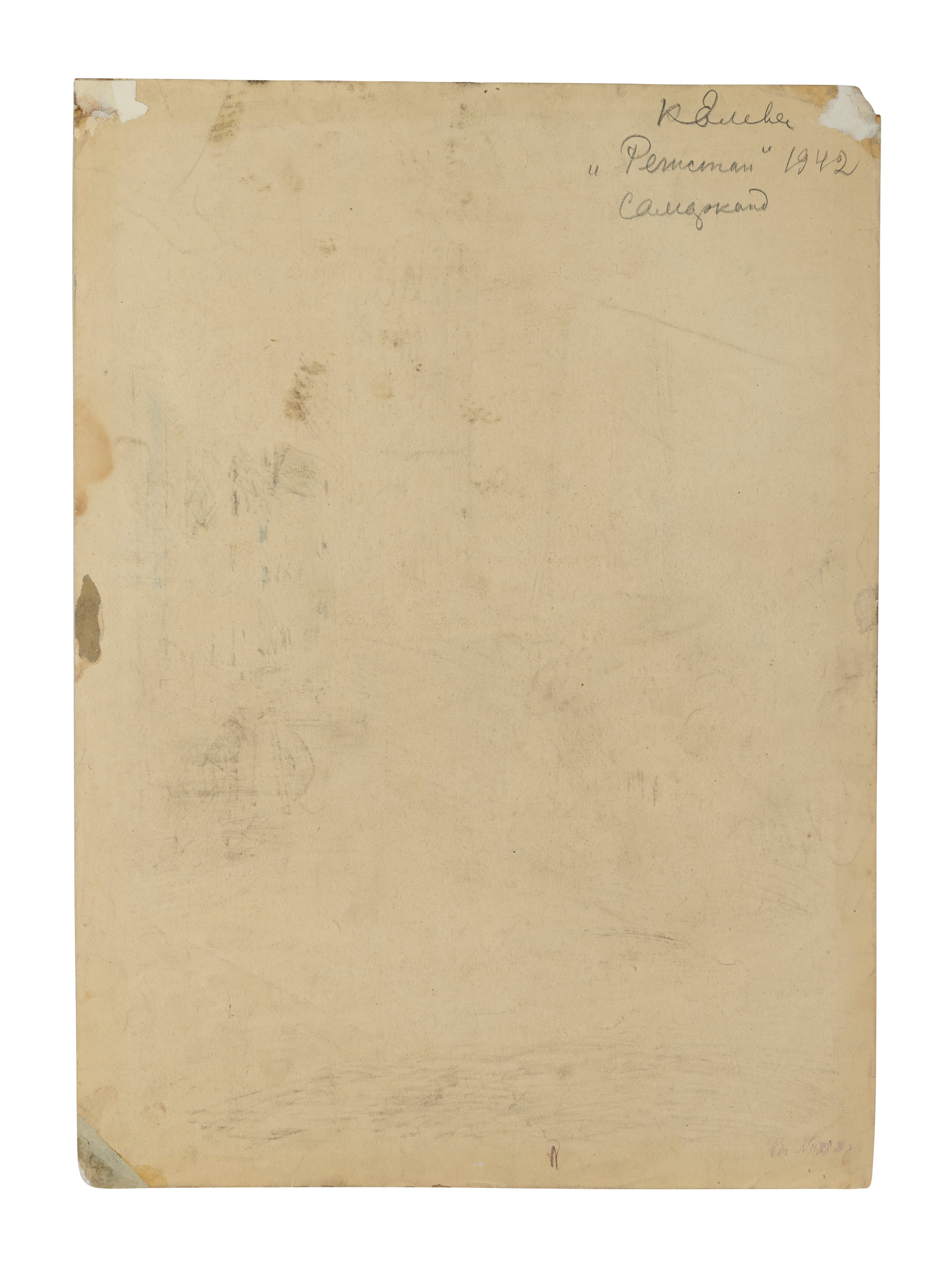 signed, titled in Cyrillic and dated ‘K Eleva/ Registan/ 1942/ Samarkand’ (on the reverse)