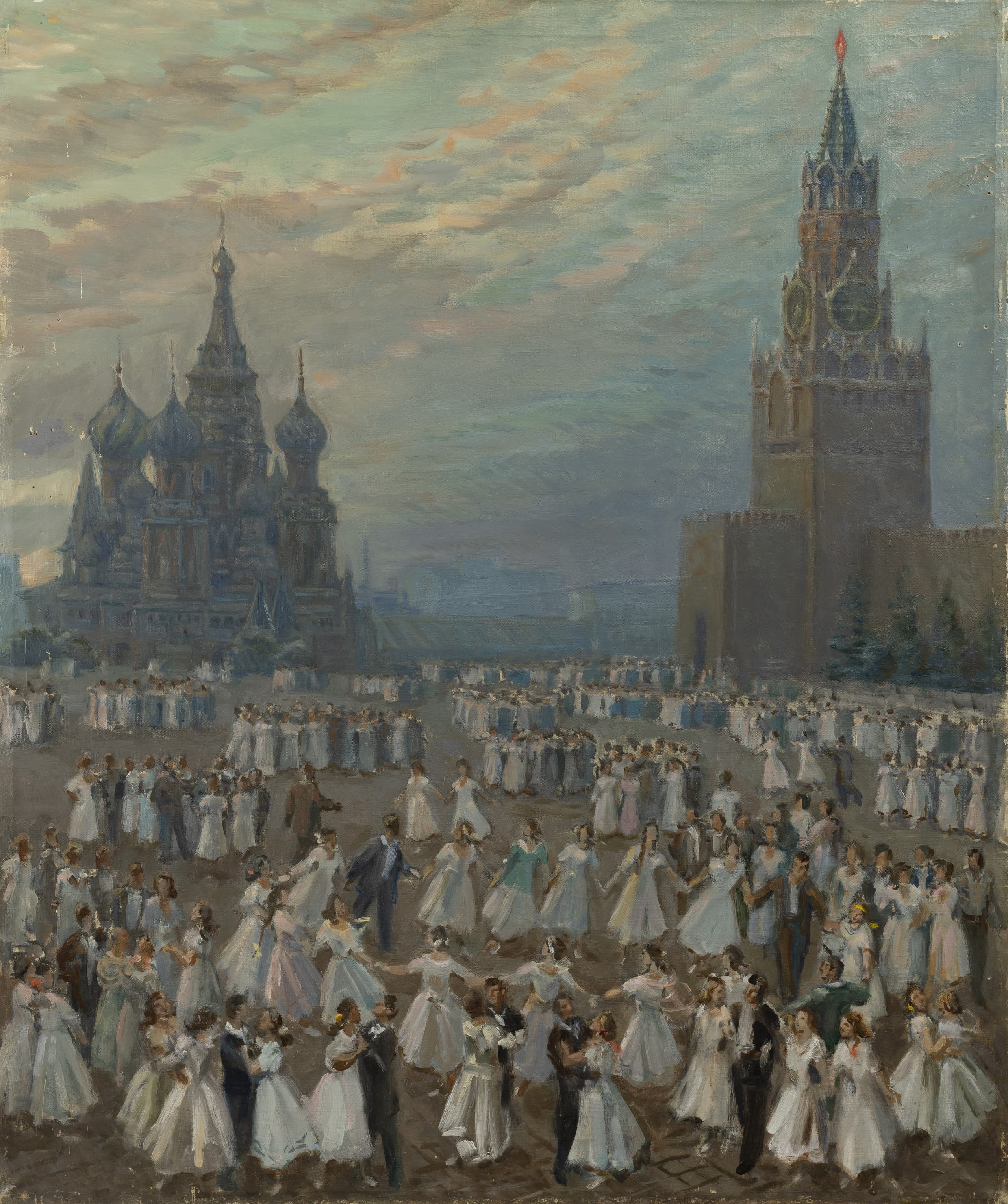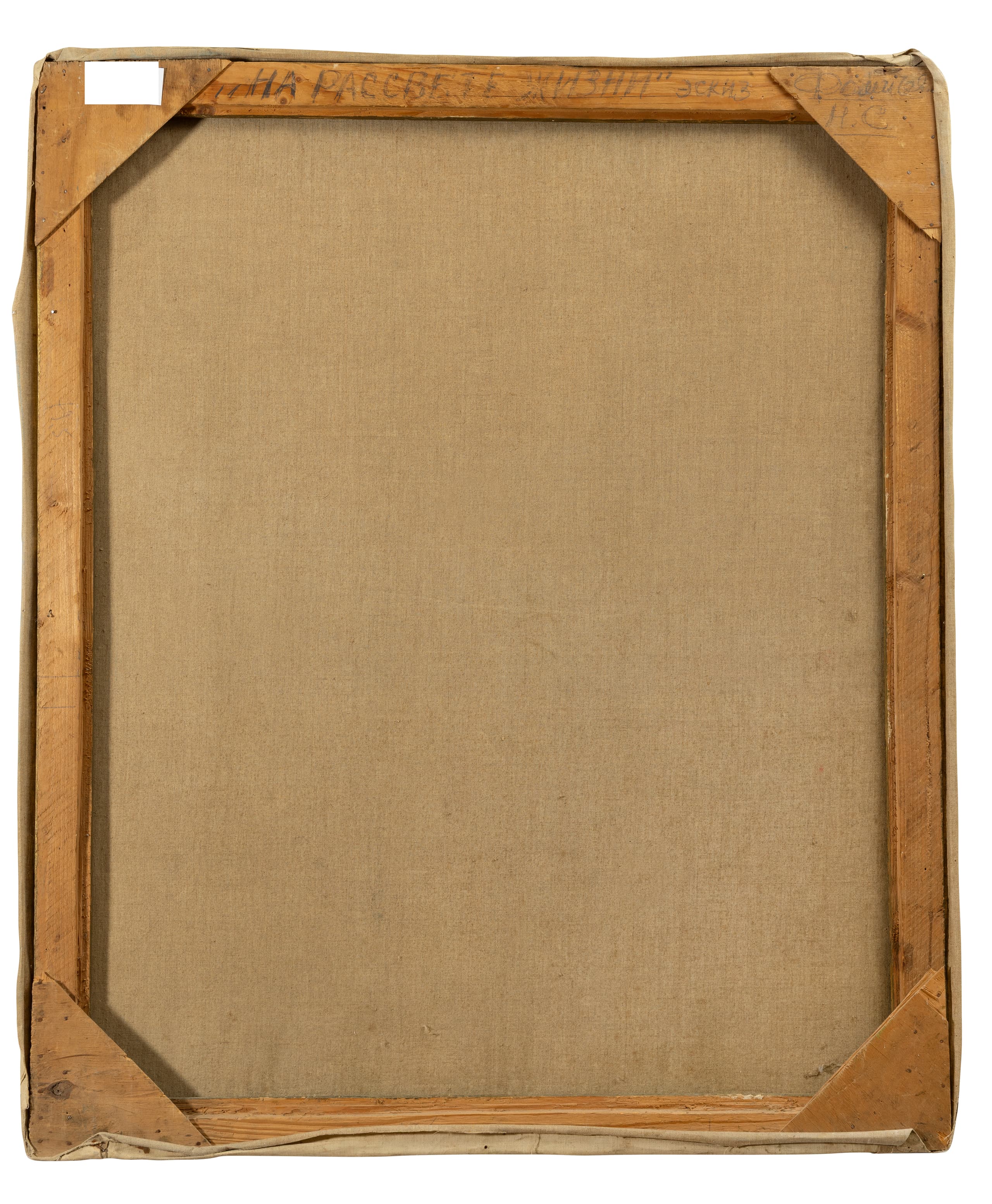 oil on canvas signed and inscribed in Cyrillic ‘Na rassvete zhizhi eskiz Fomichev N S’ (on the reverse of the stretcher) 87.3 x 73 cm