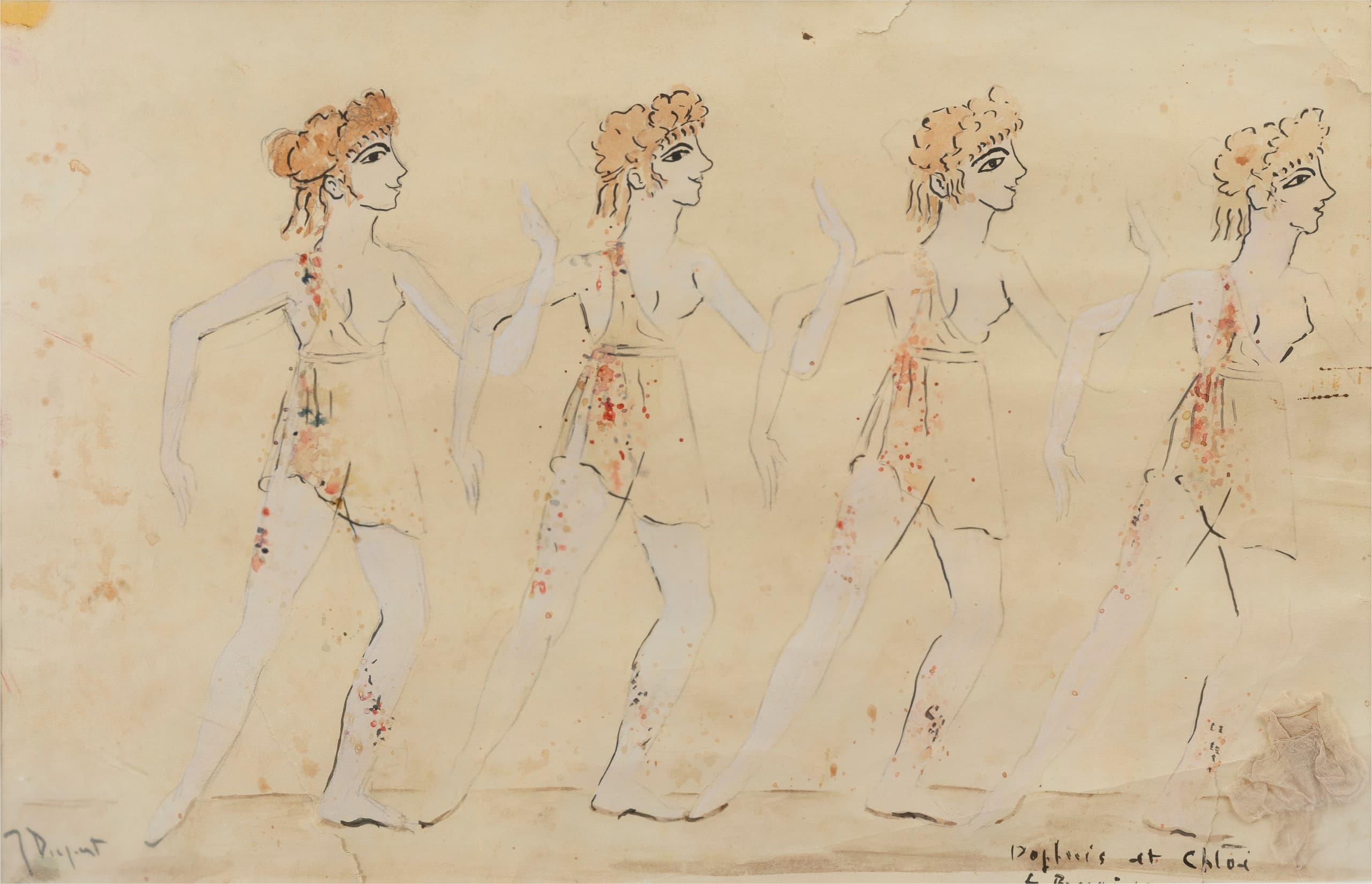 JACQUES DUPONT (1909–1978) Three costume designs for Maurice Ravel’s ballet ‘Daphnis et Chloé’