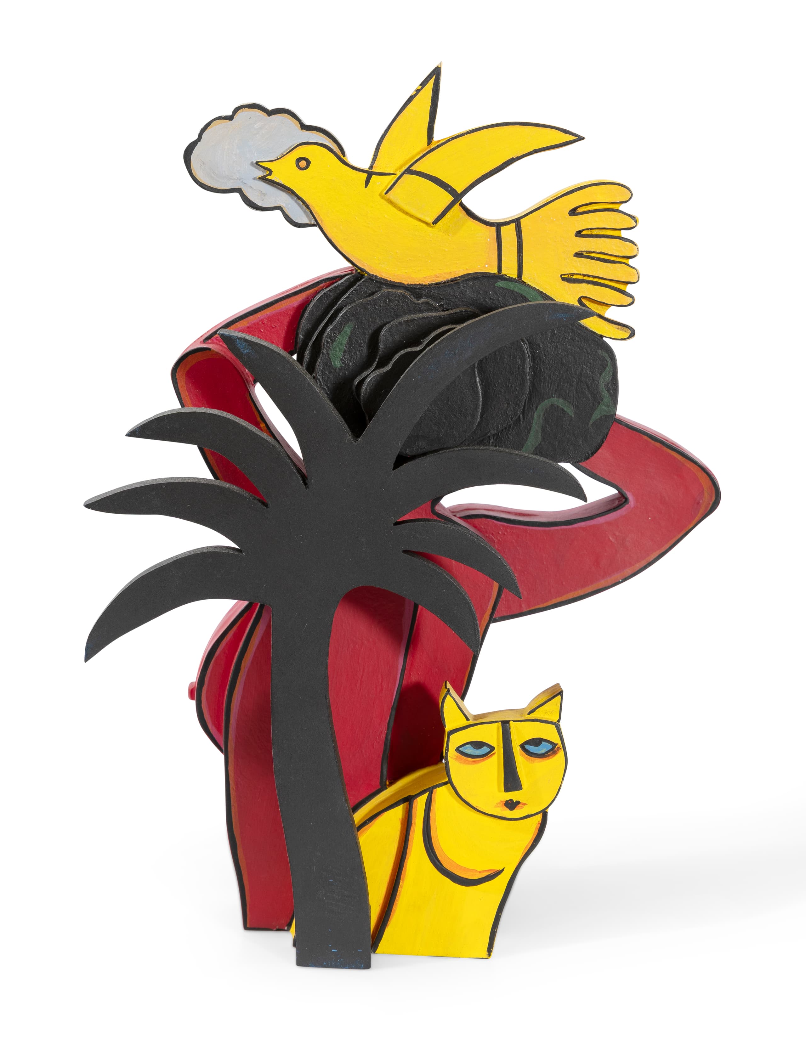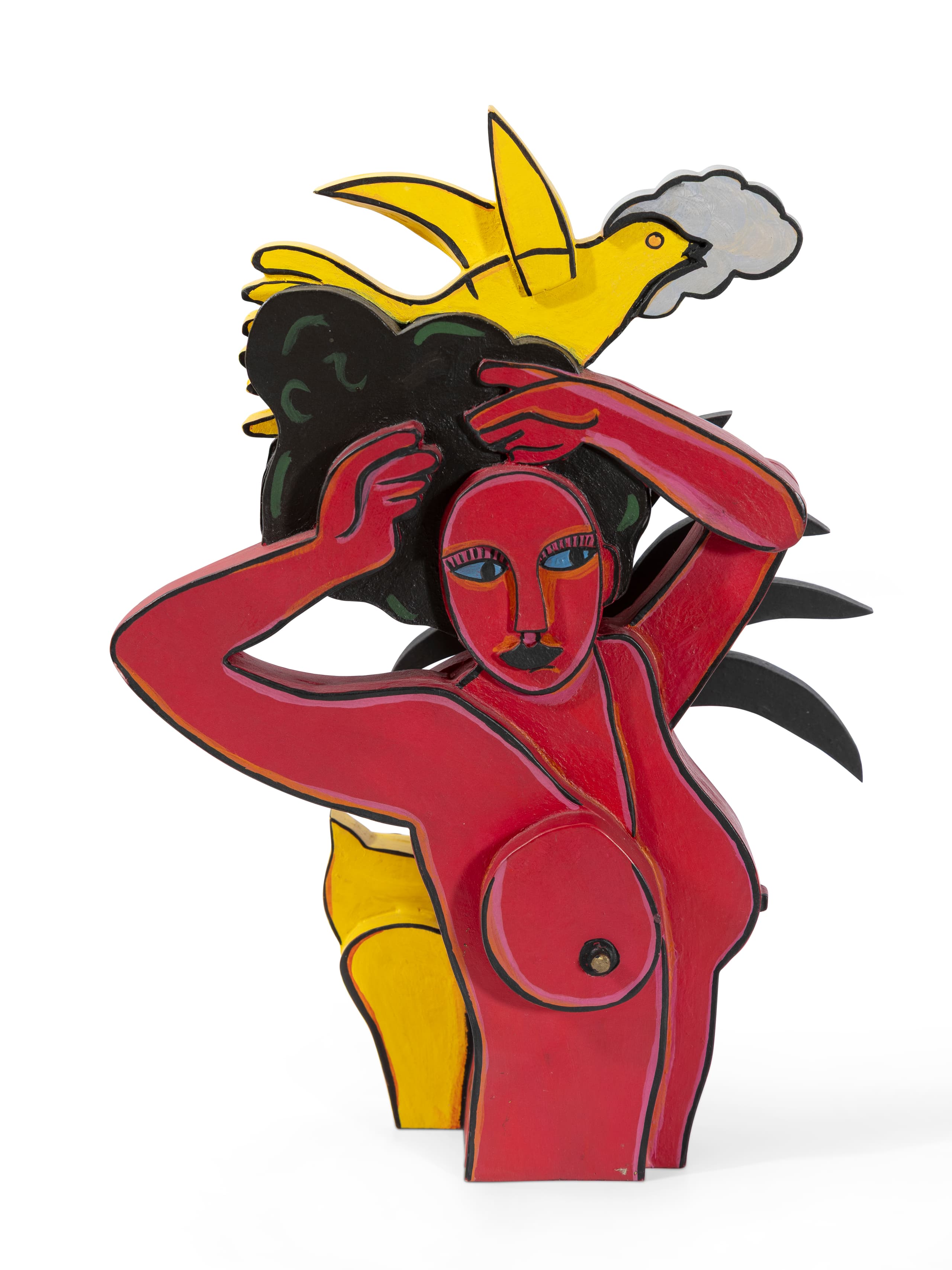 After moving towards abstraction (abstract landscape painting) following the break-up of the Cobra group in 1951, he returned to figurative art in the early 1960s. Impressed by the lushness of nature in certain countries he visited (Africa, South America, Mexico, etc.), he returned to the passionate, expressionist style of his Cobra period. In his later works, imbued with lyricism, the woman (who represents the Earth in the artist’s language), the bird (the masculine element and the artist himself), the sun and the snake (symbols of the feminine and masculine sexes), as well as the cat, are omnipresent.
