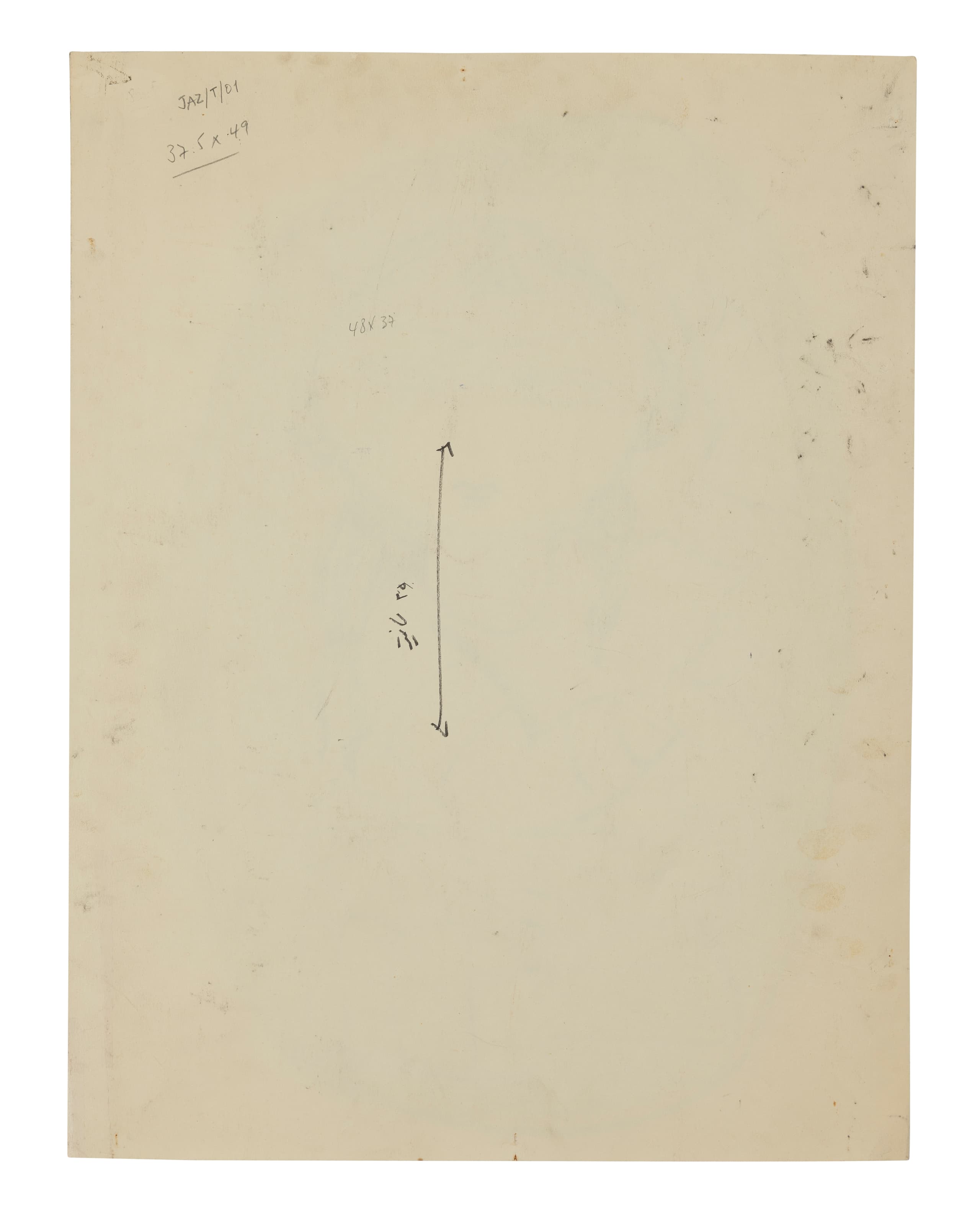 signed ‘JAZEH TABATABAI’ (along the lower edge); signed, dated ‘JAZ/T/01’, inscribed (on the reverse) mixed media on paper 49 x 37.5 cm executed in 2001