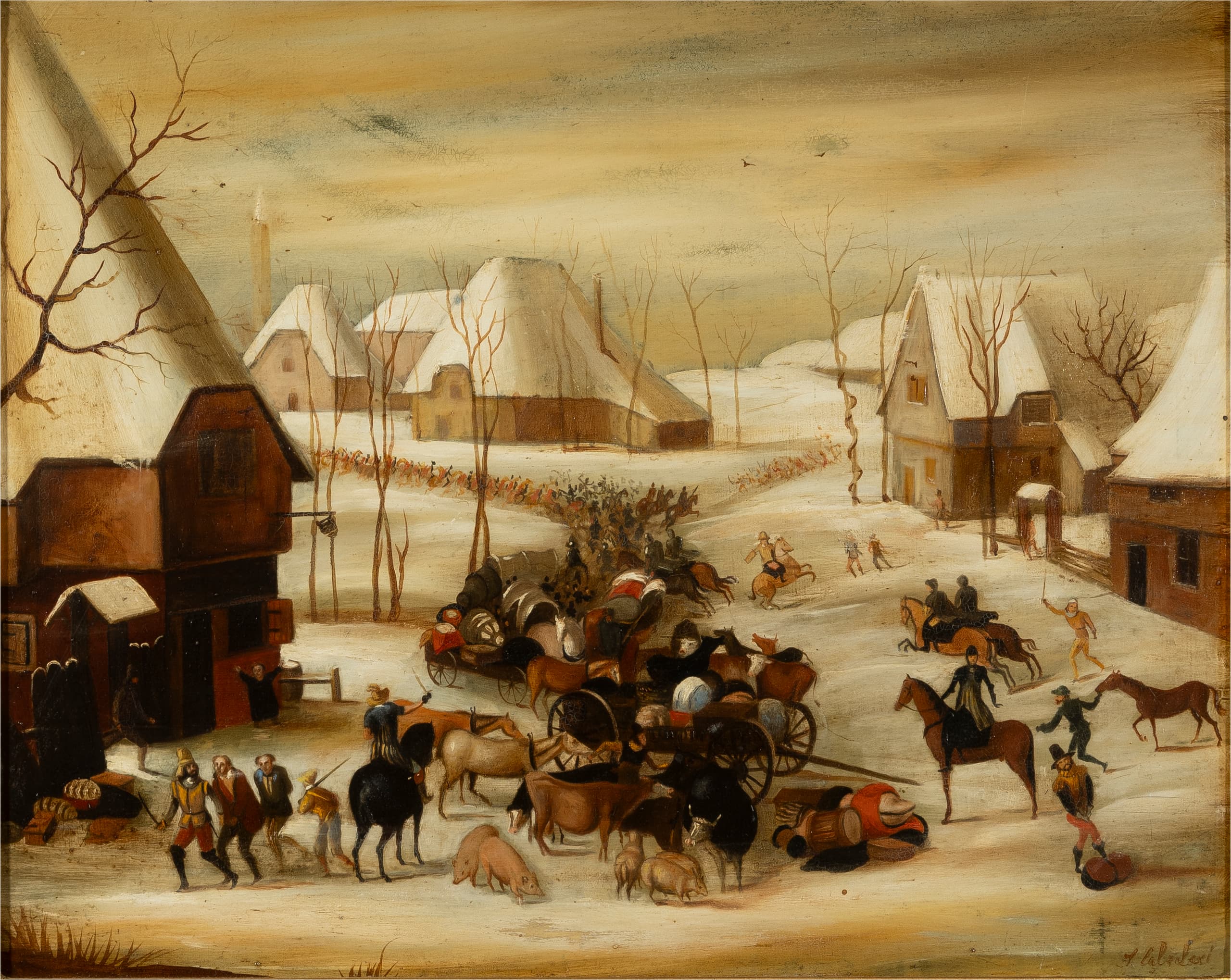 IDA CALZOLARI (B. 1936) Pair of winter village scenes