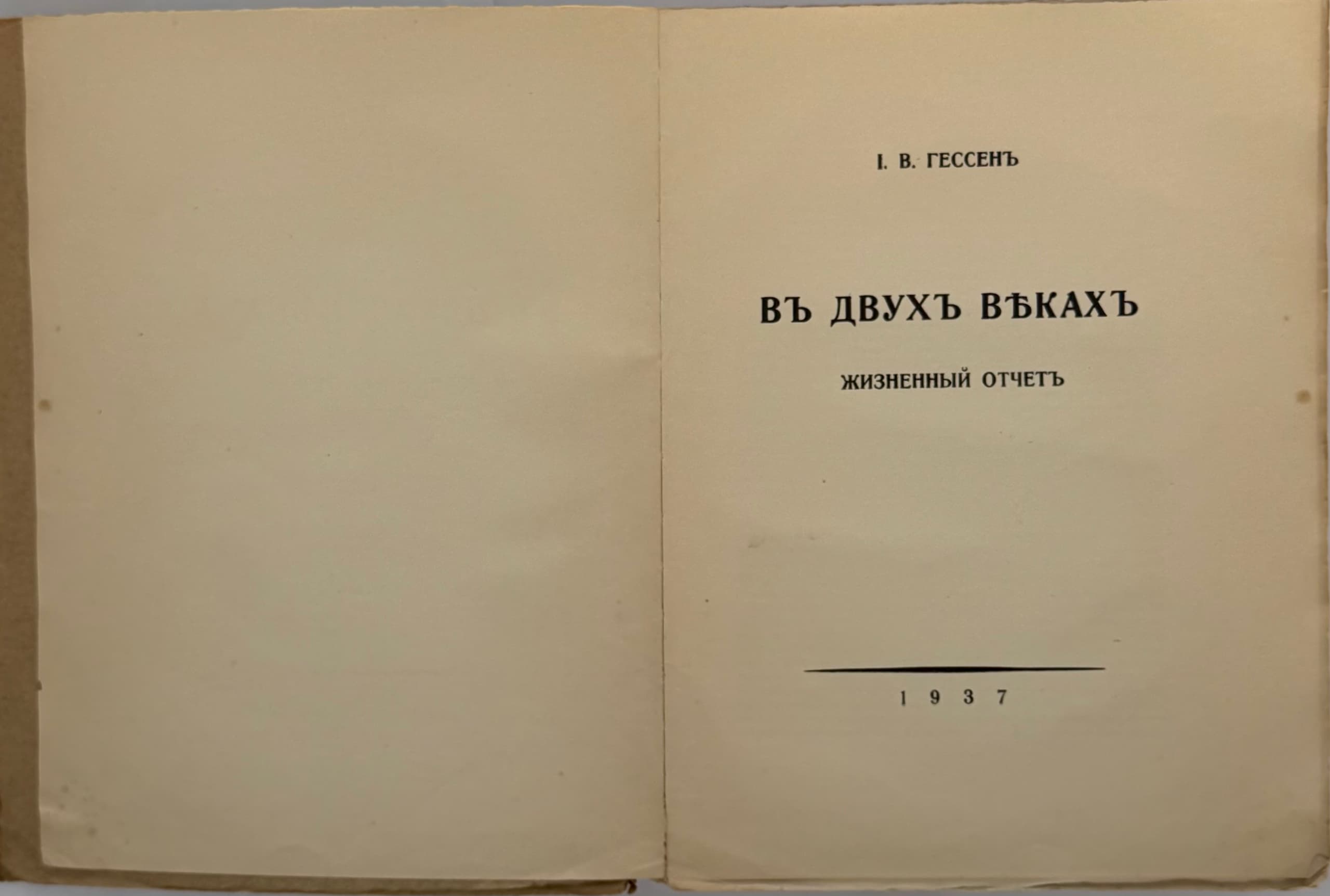 GESSEN, I.V. (1866–1943) V dvukh vekakh: zhiznennyy otchet ['Across Two Centuries: An Autobiography']. [Berlin], 1937.