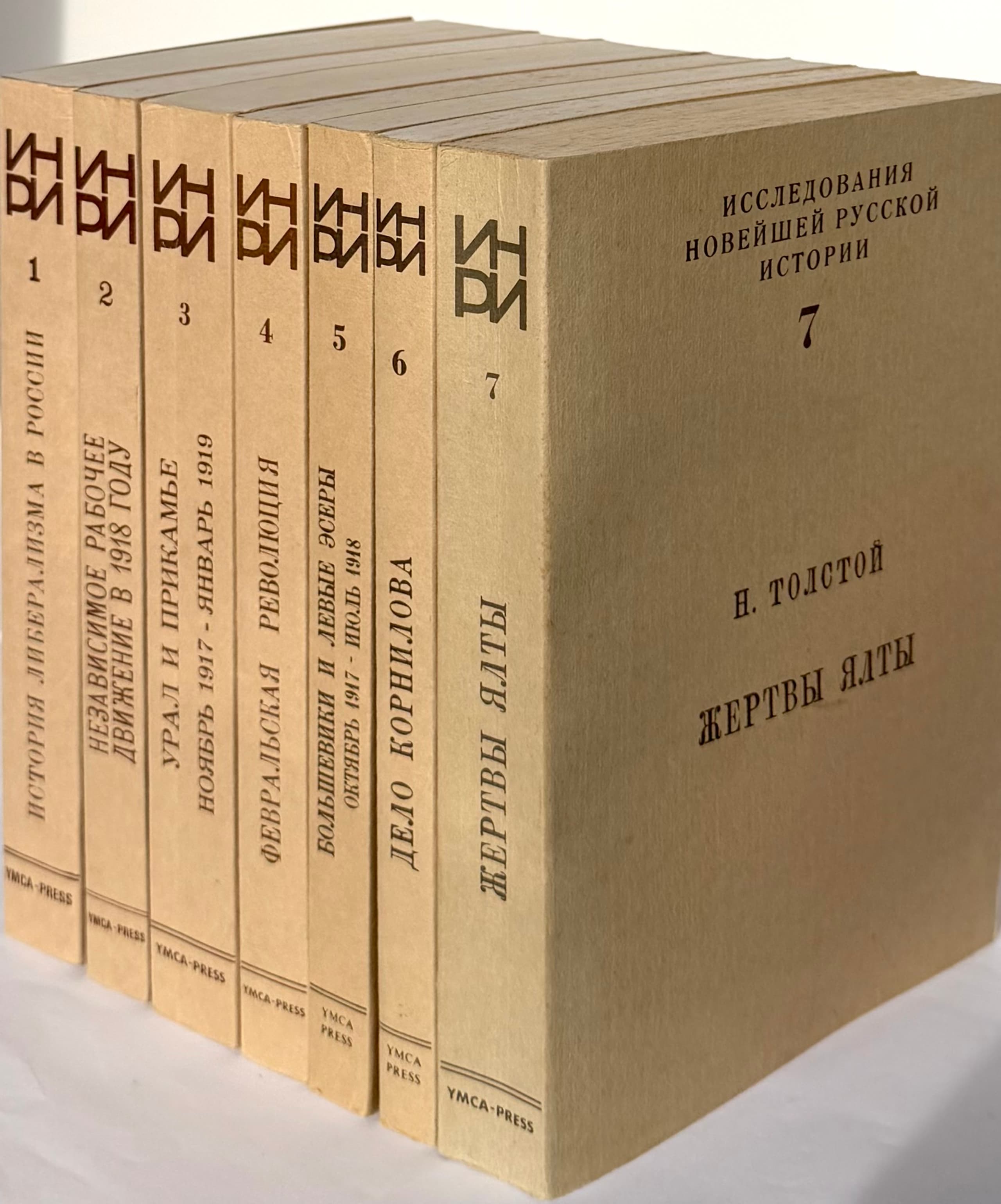 SOLZHENITSYN, A.I. (ed.) ISSLEDOVANIYA NOVEISHEI RUSSKOI ISTORII. Kn. 1–7 ['Studies in Modern Russian History' Vols. 1–7] Edited by A.I. Solzhenitsyn. Paris: YMCA-Press, 1980–1988.