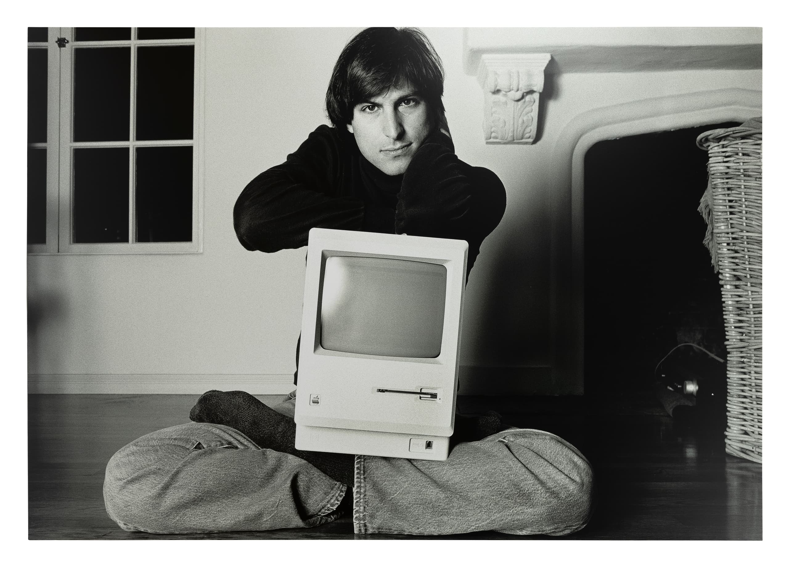 ‘We were just sitting, talking about creativity and everyday stuff in his living room. I was beginning to build a level of intimacy with him, and then he rushed off, and came back in and plopped down in that pose. He spontaneously sat down with a Macintosh in his lap. I got the shot the first time. We did do a few more shots later on, and he even did a few yoga poses—he lifted his leg and put it over his shoulder—and I just thought we were two guys hanging out, chatting away, and enjoying the relationship. It wasn’t like there was a conceptualization here—this was completely off the cuff, spontaneity that we never thought would become a magazine image. (...)