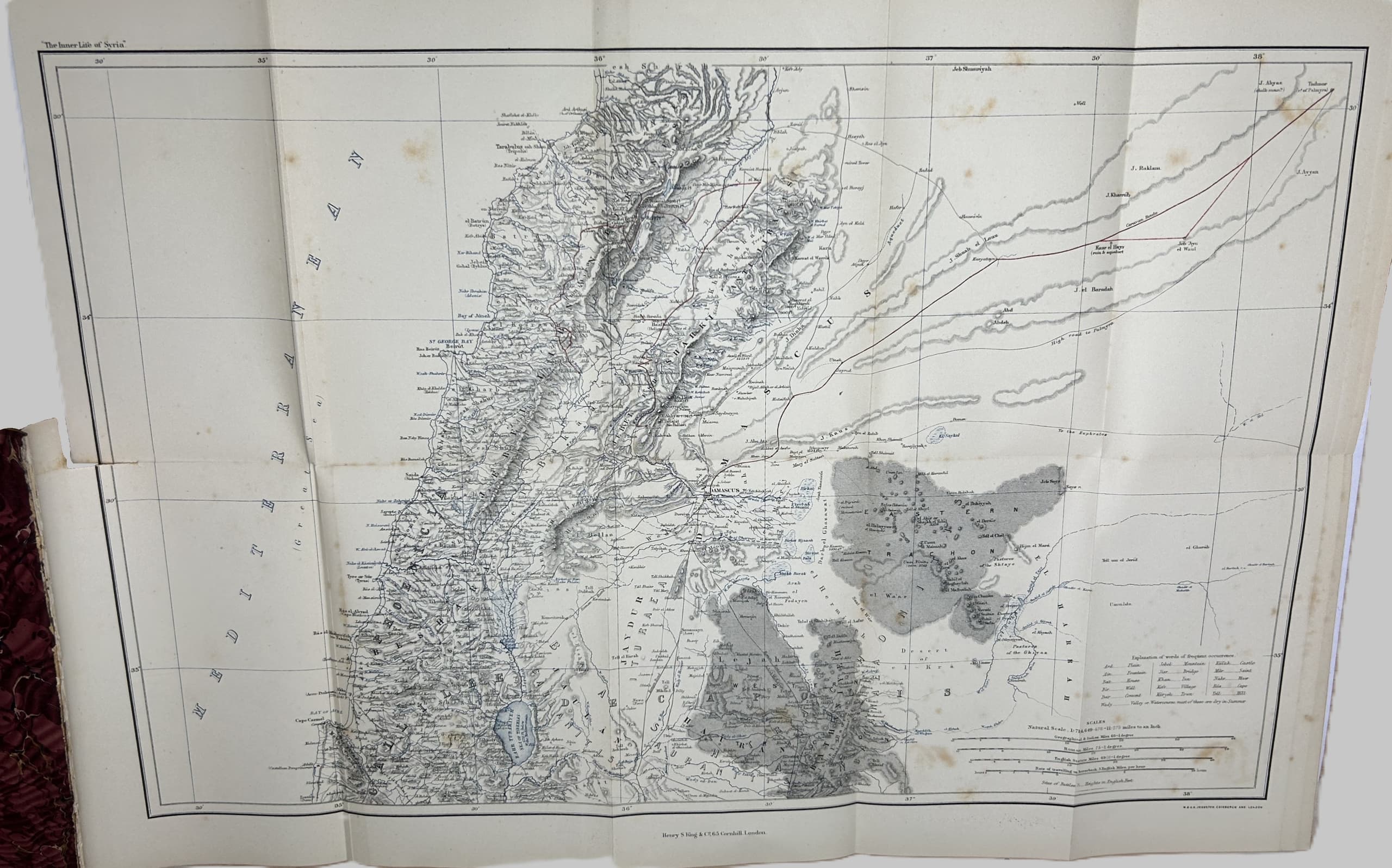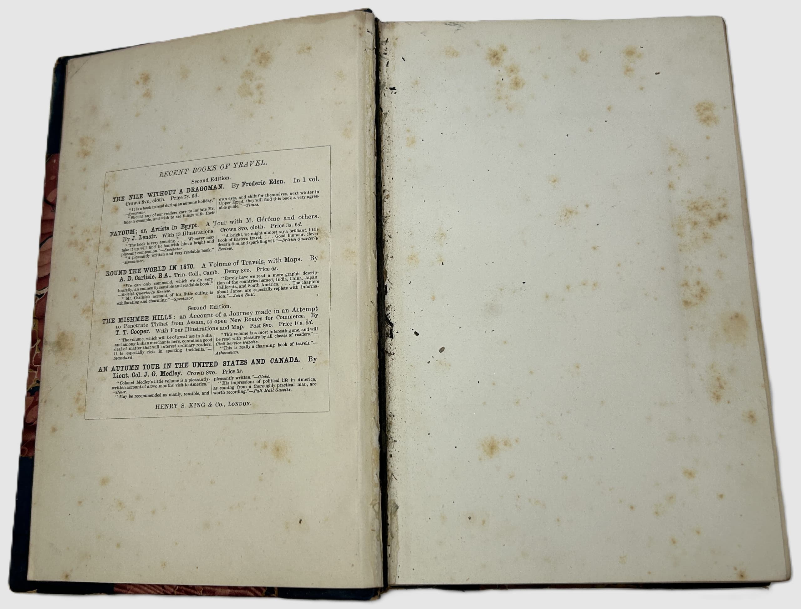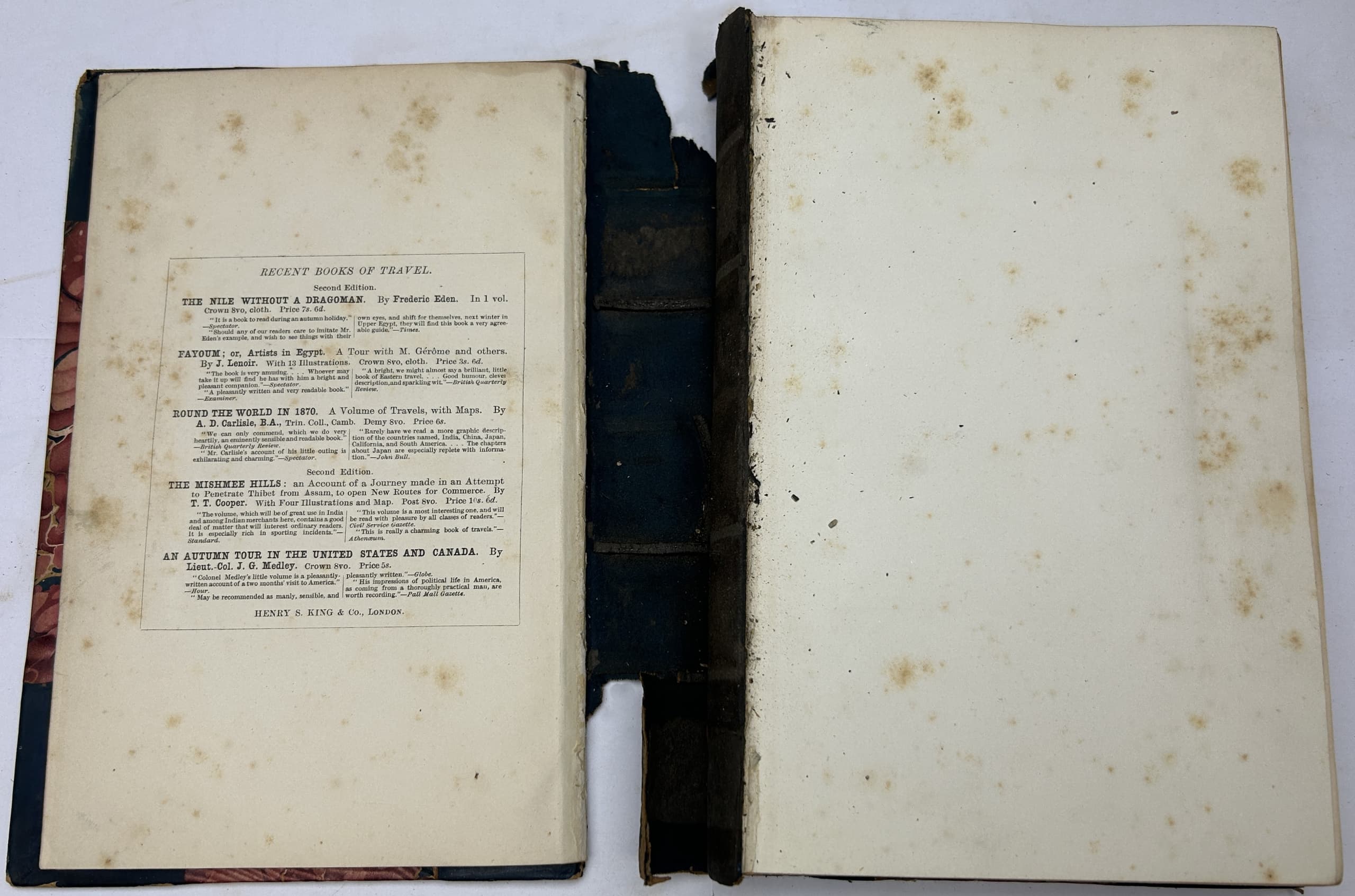 3 vols. 22 x 15 cm. Photographic frontispieces (Isabel in Vol. I and Richard in Vol. II), 2 chromolithographic plates, folding map, x, 376, 340p plus [3] p. publisher’s advertisements. Contemporary half calf, marble boards, leather spine labels. Binging damaged (vol 1) and almost detached, spine damaged (vol 2), foxing.