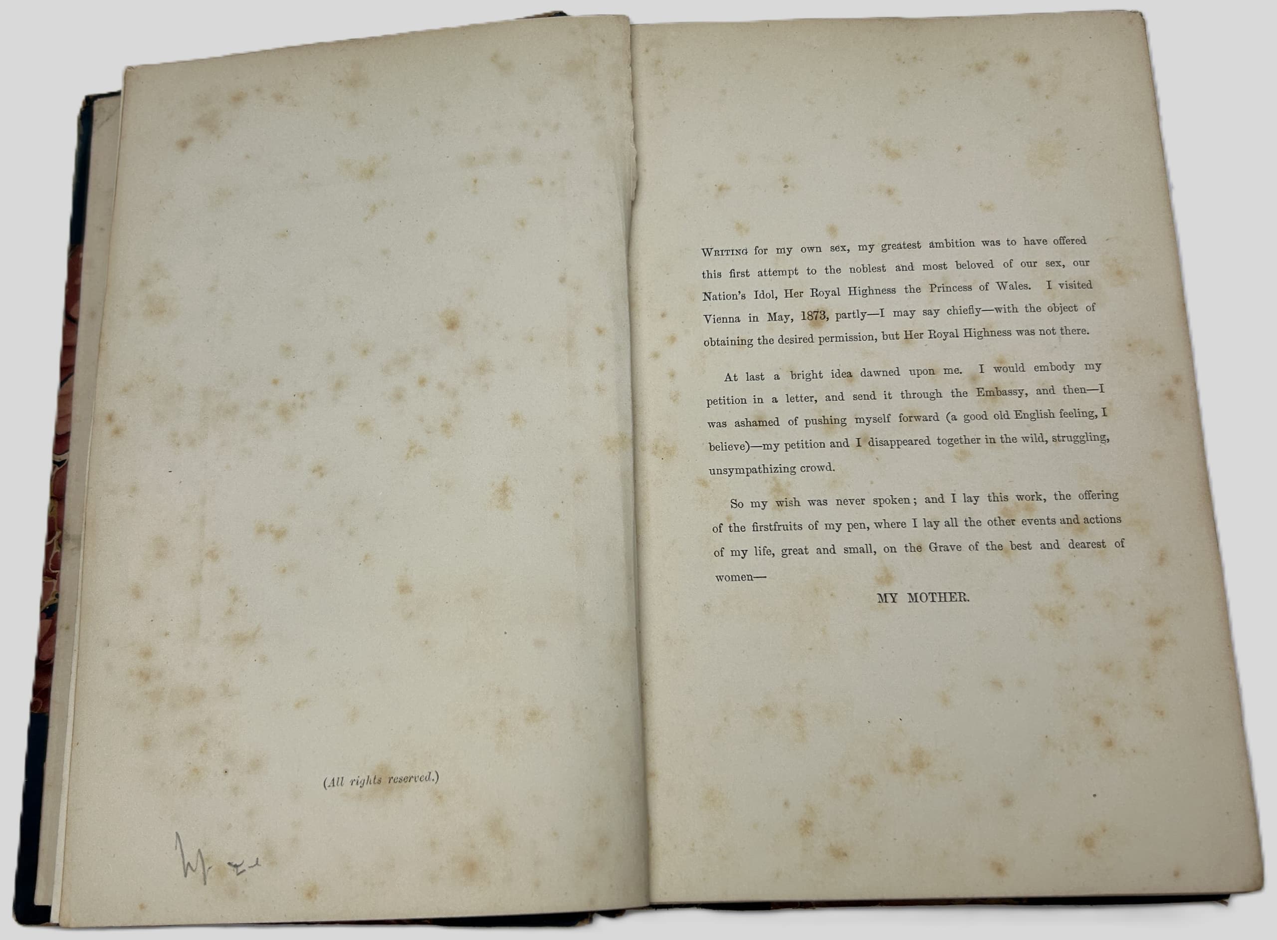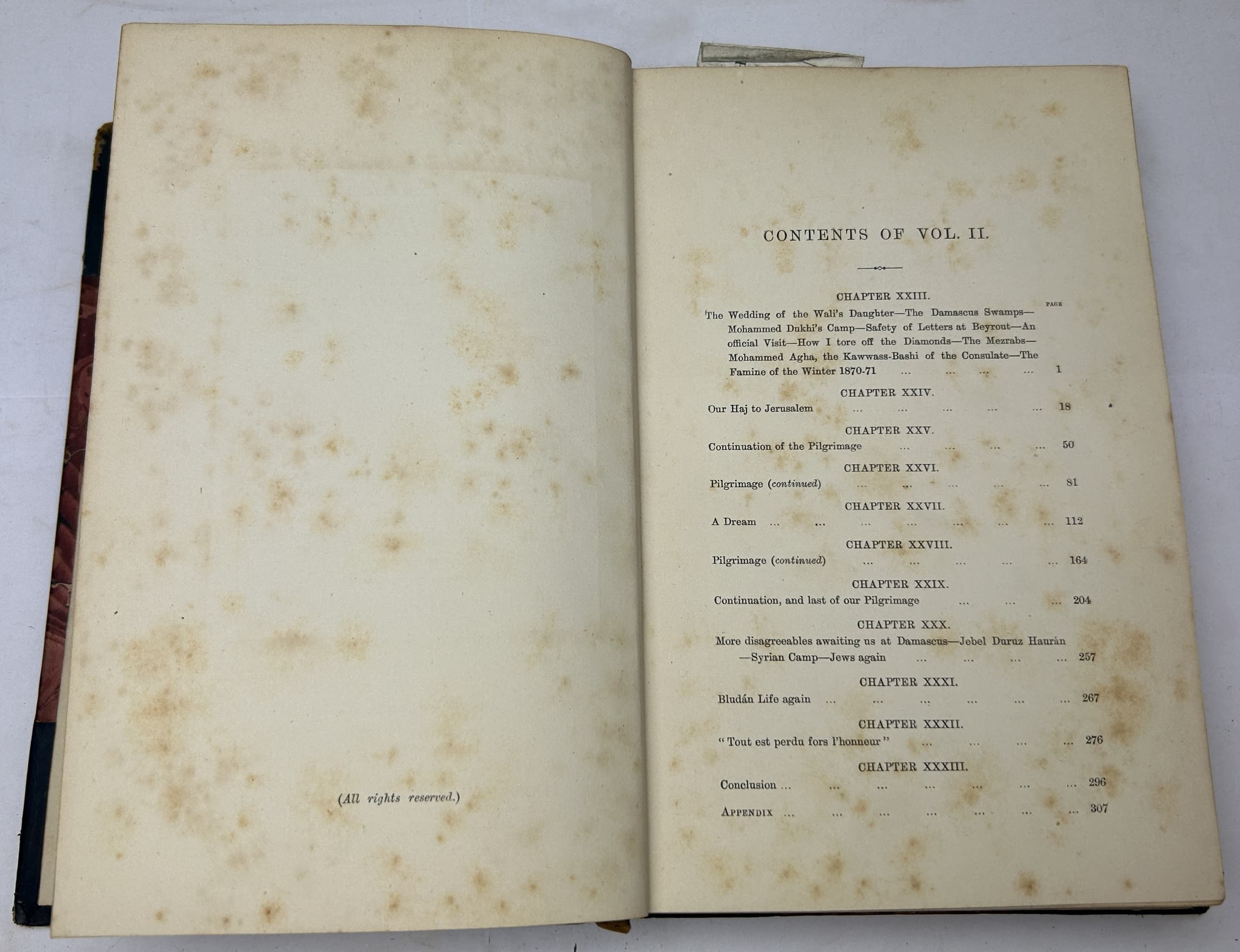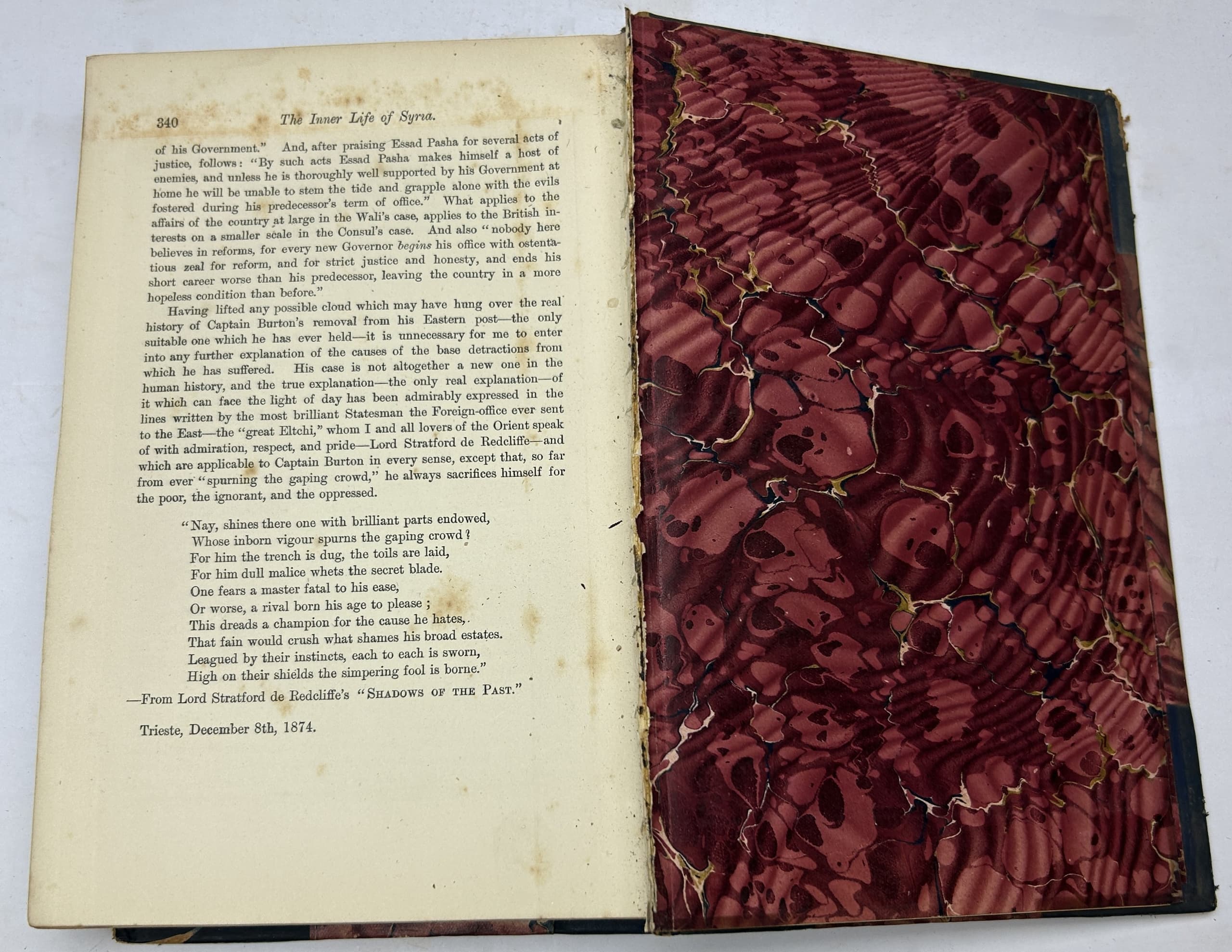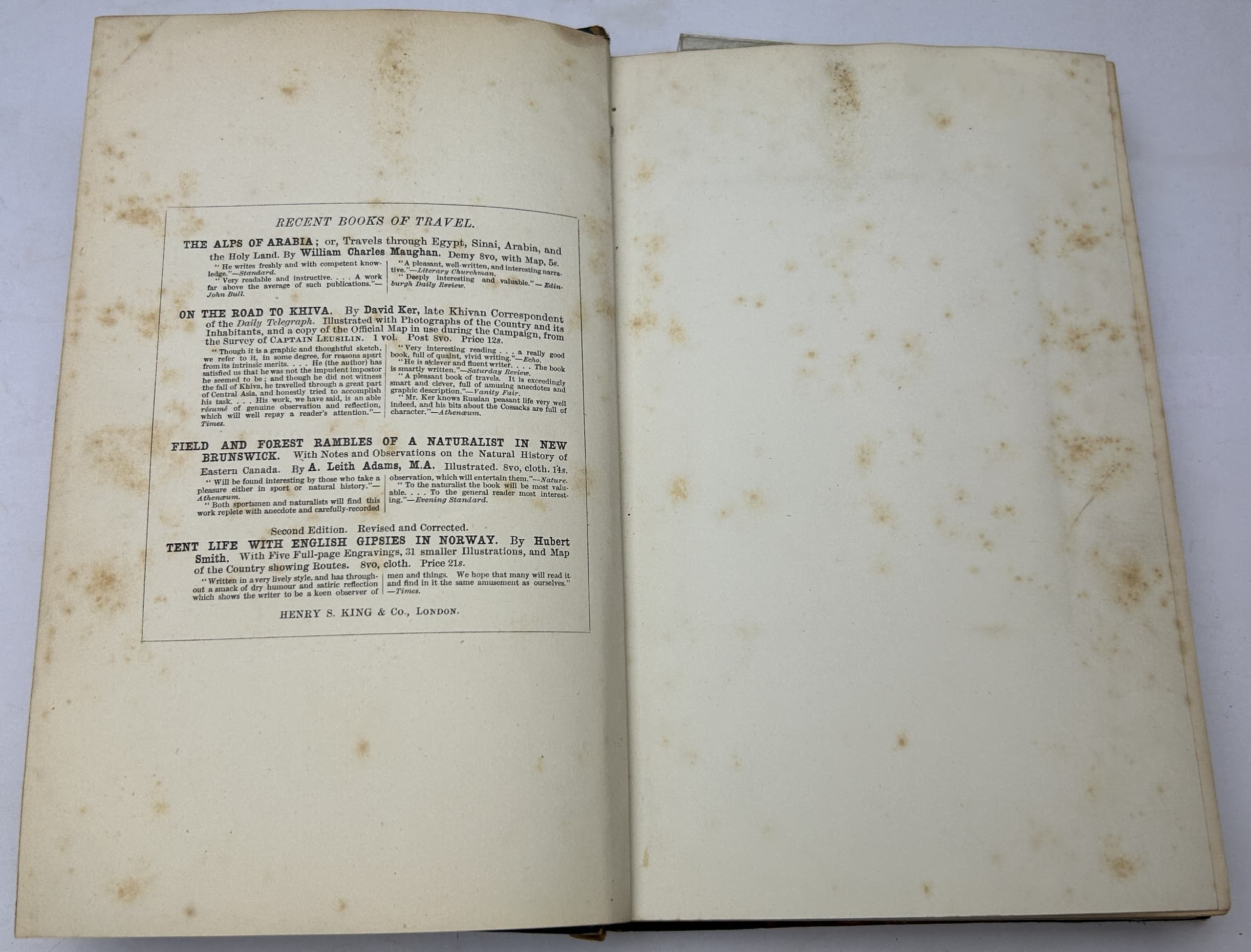 3 vols. 22 x 15 cm. Photographic frontispieces (Isabel in Vol. I and Richard in Vol. II), 2 chromolithographic plates, folding map, x, 376, 340p plus [3] p. publisher’s advertisements. Contemporary half calf, marble boards, leather spine labels. Binging damaged (vol 1) and almost detached, spine damaged (vol 2), foxing.