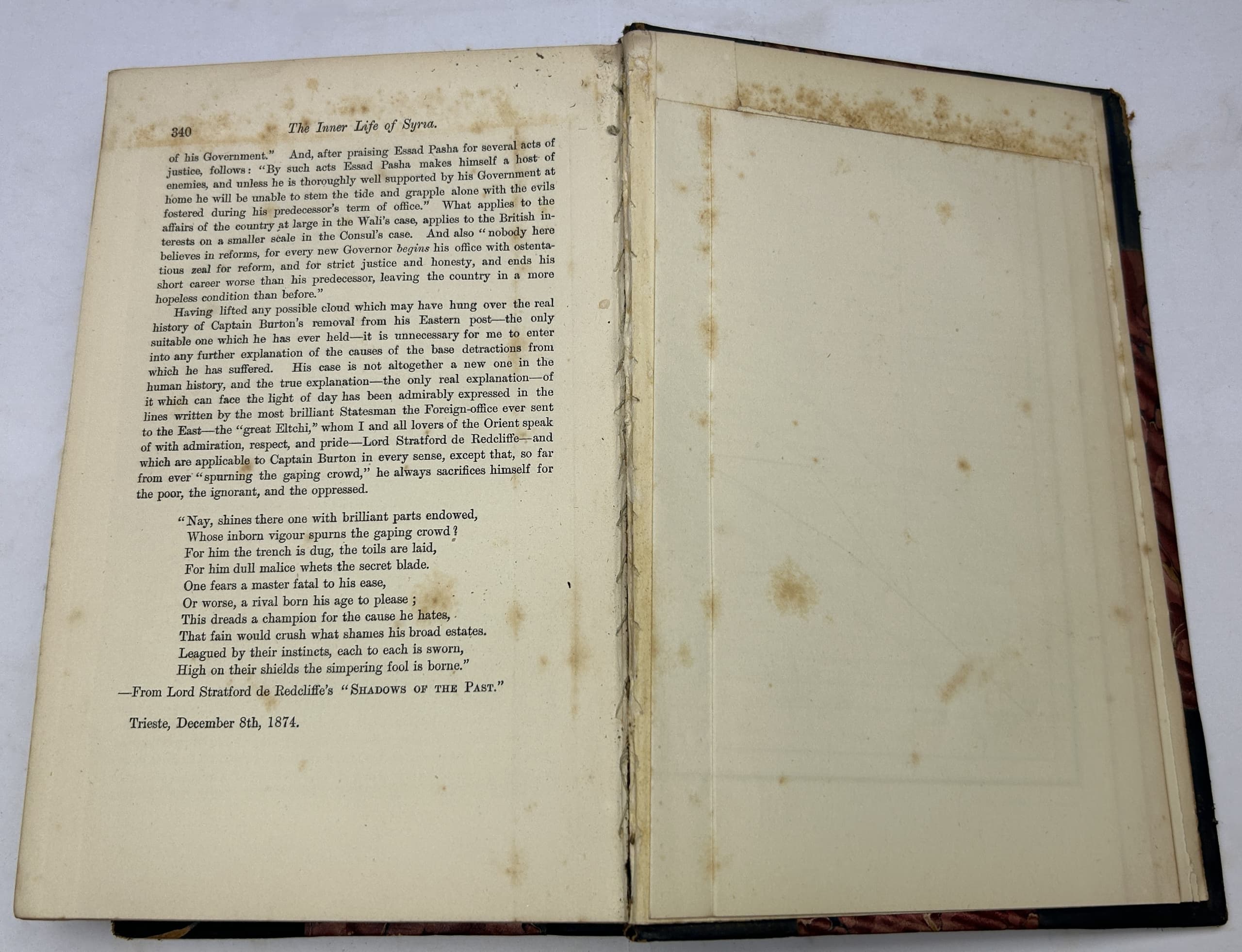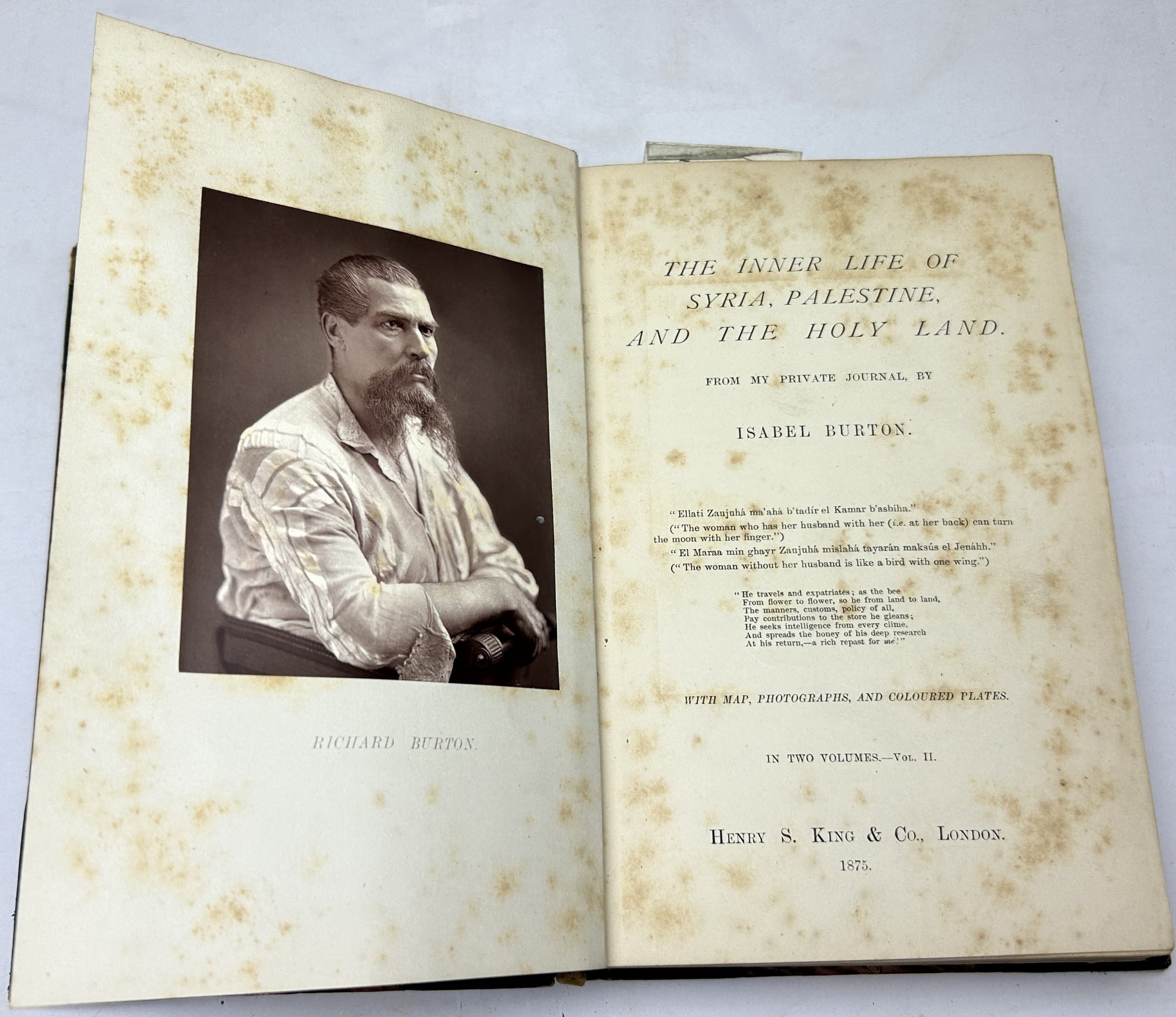 BURTON ISABEL (1831-1896), LADY The Inner Life of Syria, Palestine, and the Holy Land. From My Private Journal London: Henry S. King & Co, 1875.