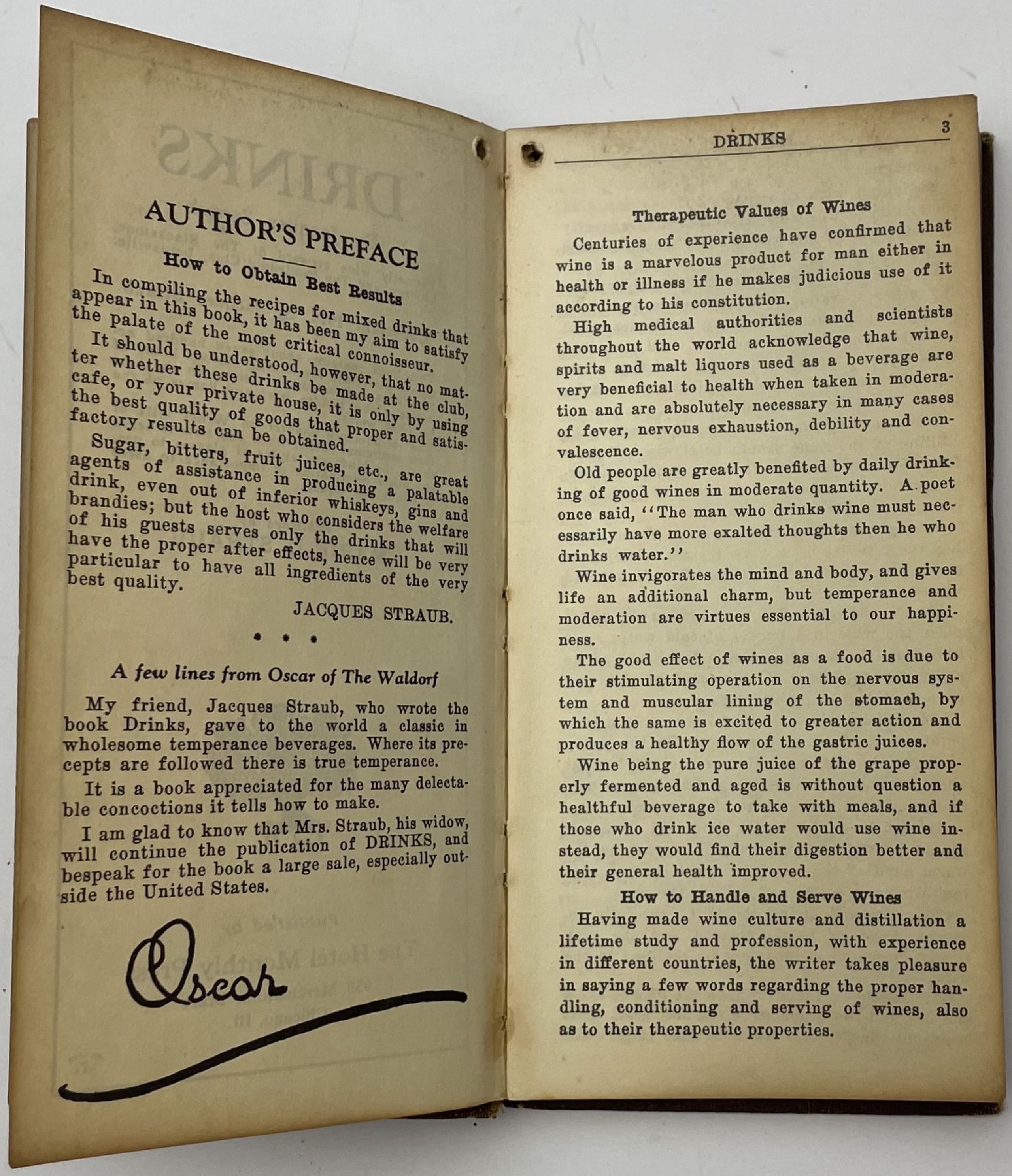 JACQUES STRAUB (c.1870–1920) DRINKS 2nd EDITION. 1920. IN ENGLISH.