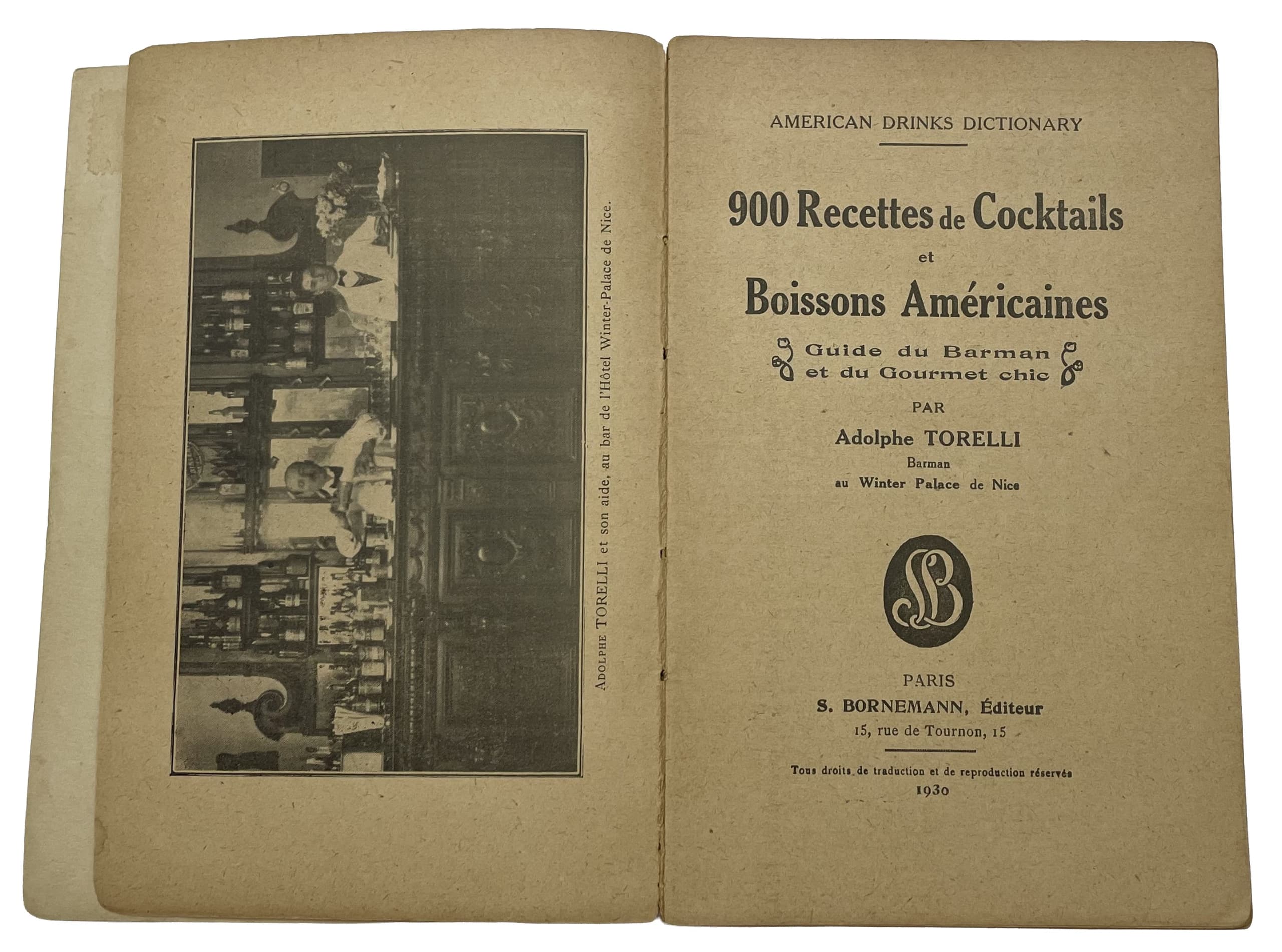 ADOLPHE TORELLI (19TH-20TH CENTURY) 900 RECIPES FOR COCKTAILS AND AMERICAN DRINKS A GUIDE FOR BARTENDERS AND CHIC GOURMETS 1930 EDITION.