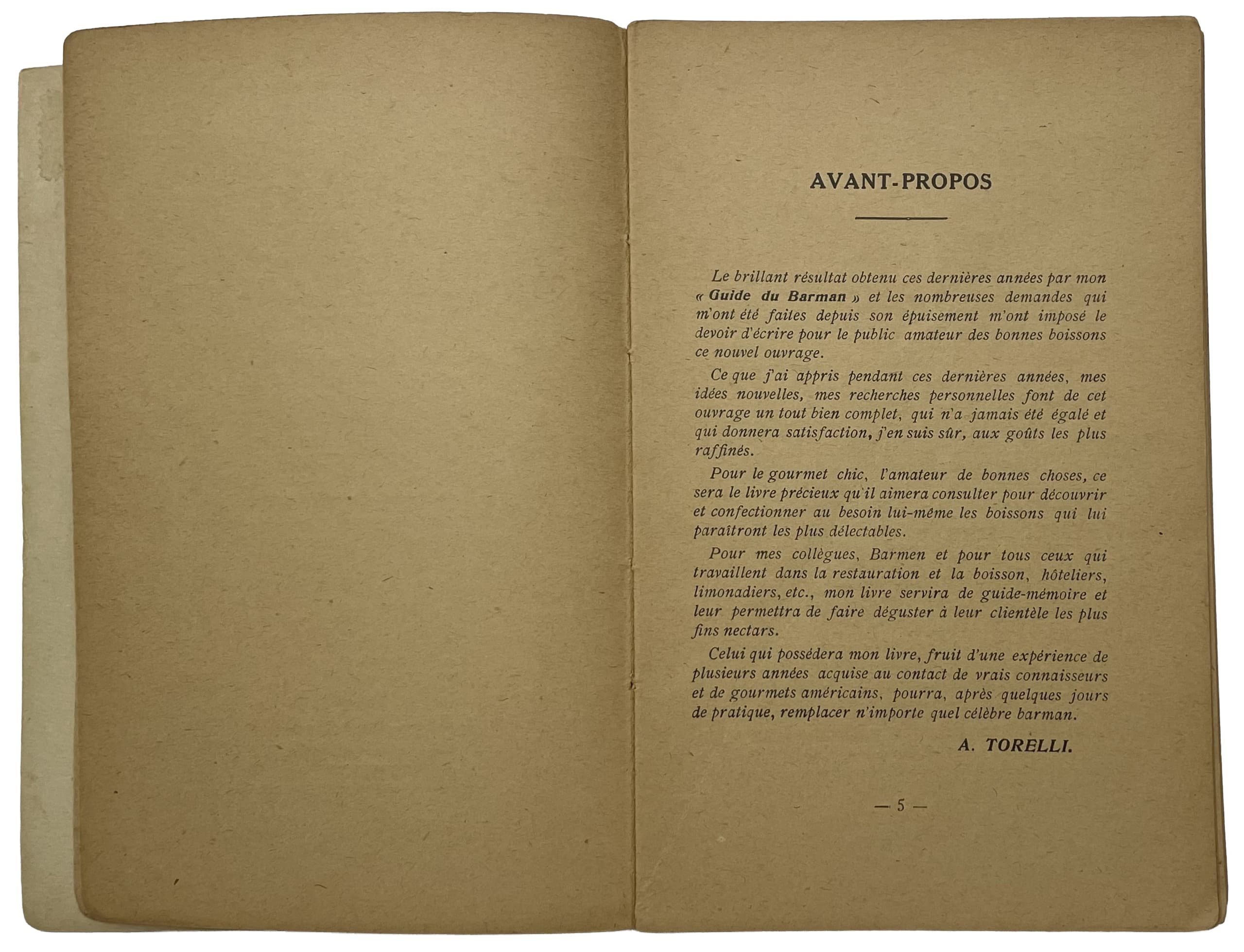 Adolphe Torelli held the position of head barman in the finest hotels on the French Riviera, notably at the Winter-Palace in Nice. His book contains the first written mention of the ‘Americano’ cocktail (lemon zest, Campari, red vermouth, sparkling water). He was a pioneer of cocktail culture in Europe.