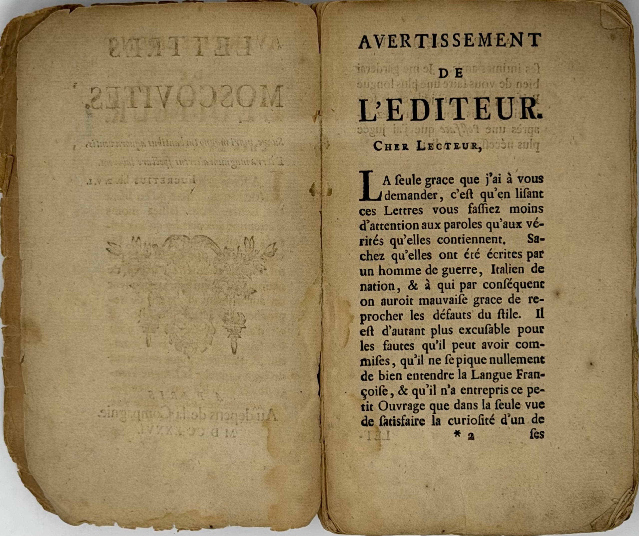 FRANCESCO LOCATELLI (1687–1770) Lettres moscovites. Paris: Huart l'ainé, 1736. In French.