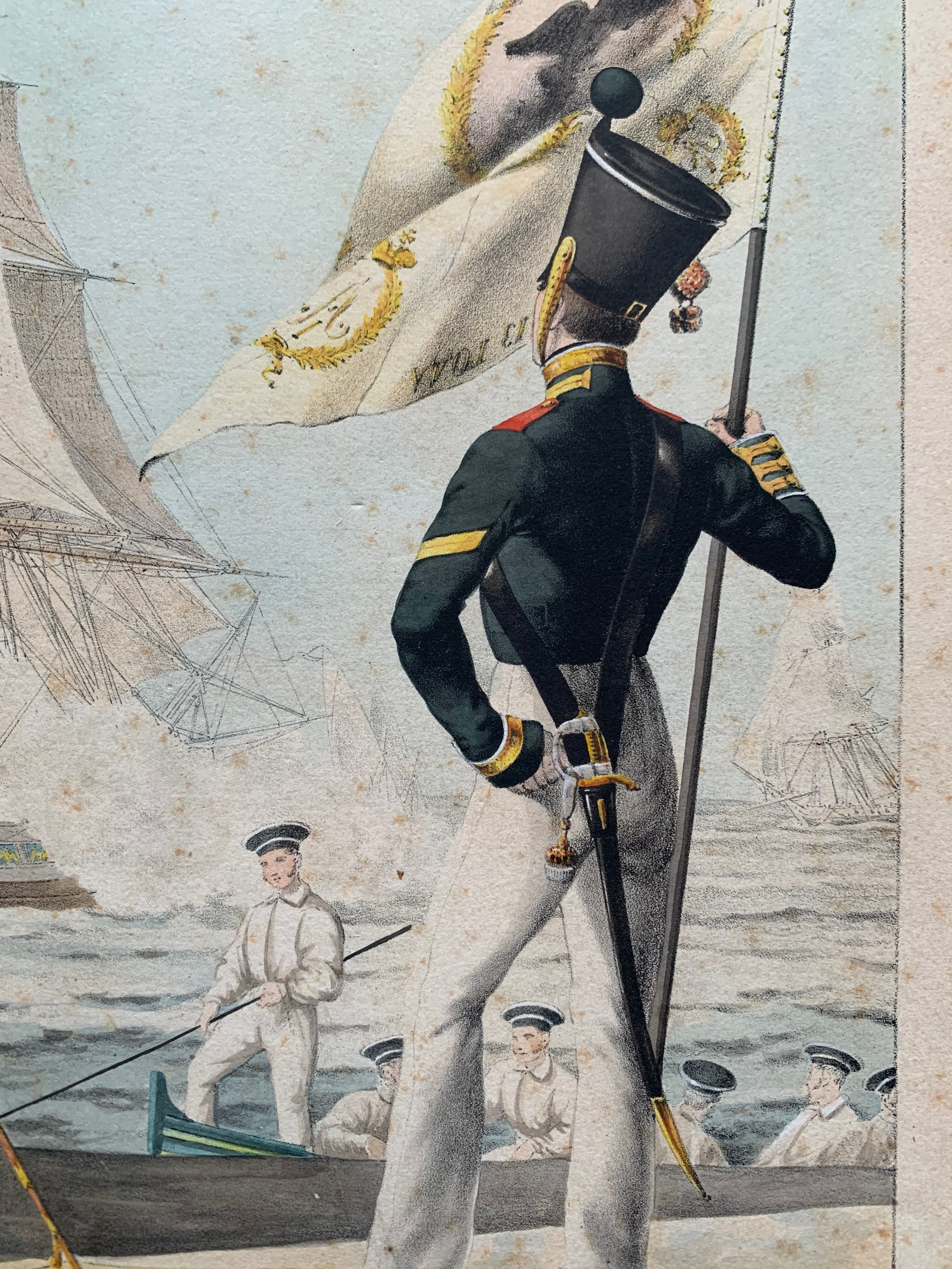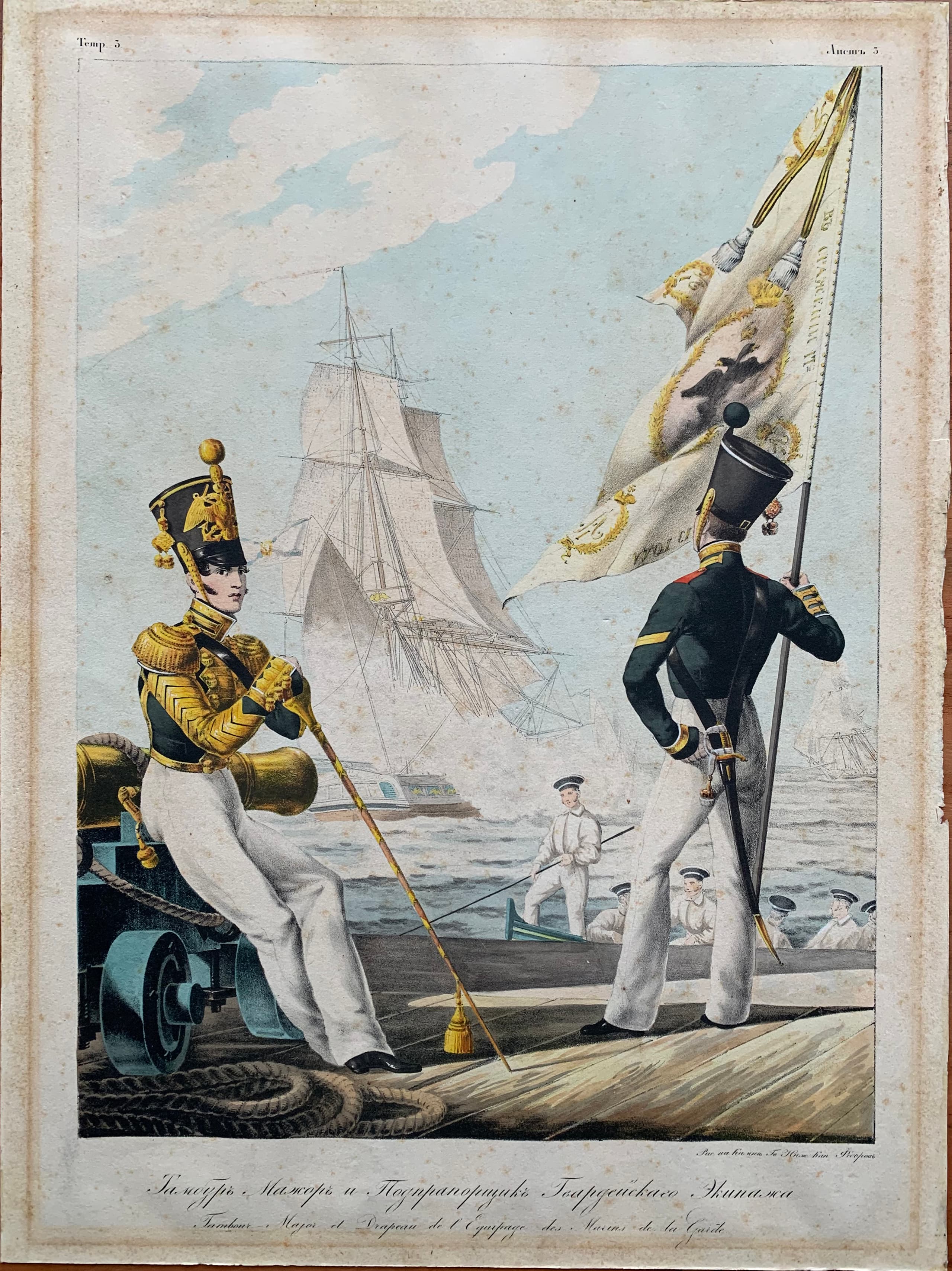 FEDOROV M.S. Drum Major and Ensign of the Guards Crew. Plate from Collection of Uniforms of the Russian Imperial Army. 1830s–1840s.