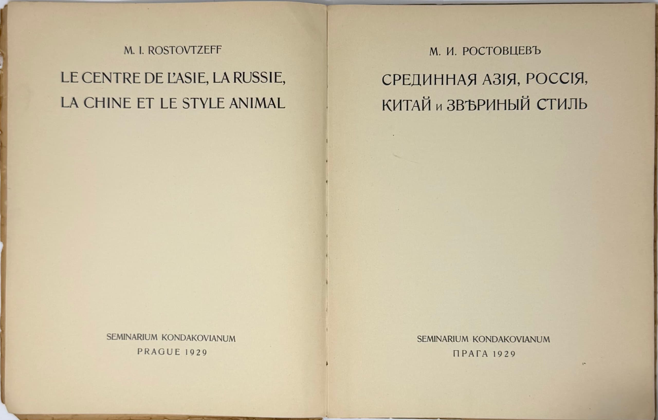 ROSTOVTSEV, M.I. (1870–1952) Sredinnaya Aziya, Rossiya, Kitay i zverinyy stil' [Central Asia, Russia, China, and the Animal Style]. Prague: Seminarium Kondakovianum, 1929.