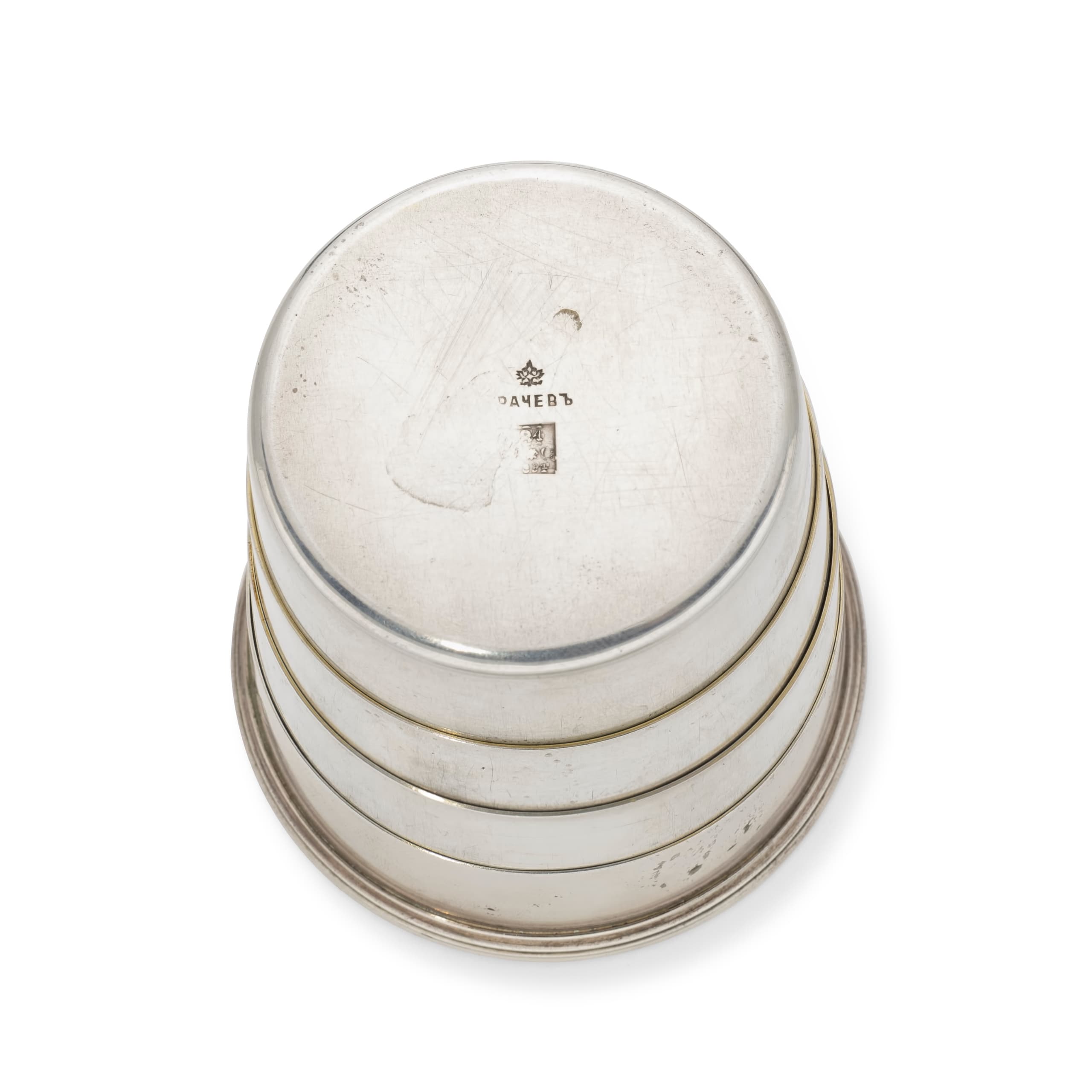 GRACHEV SILVER AND SILVER-GILT COLLAPSIBLE DRINKING CUP Grachev Brothers, Supplier to the Court of His Imperial Majesty, Russia, 1891
